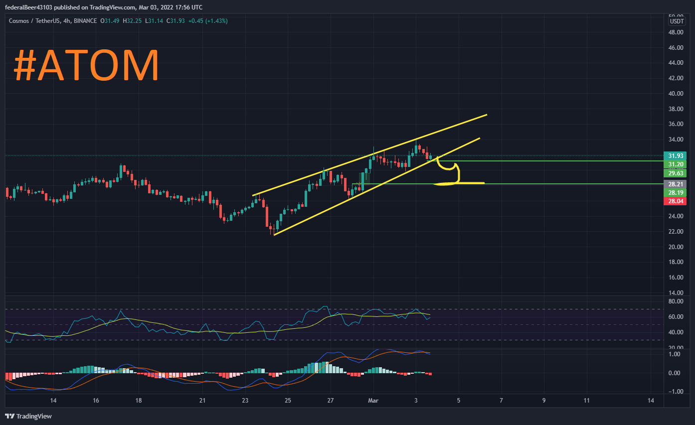#ATOMcryptofanx (32)in #cosmos • 4 years ago ATOM is forming an interesting rising wedge pattern with a declining RSI, if there is a break through the support wall of the rising wedge pattern and confirmation in resistance, I'm shorting. I will definitely keep an eye on this coin. #atom #prediction #analysis #market #blockchain #steemitcryptoacademy #cryptoacademy