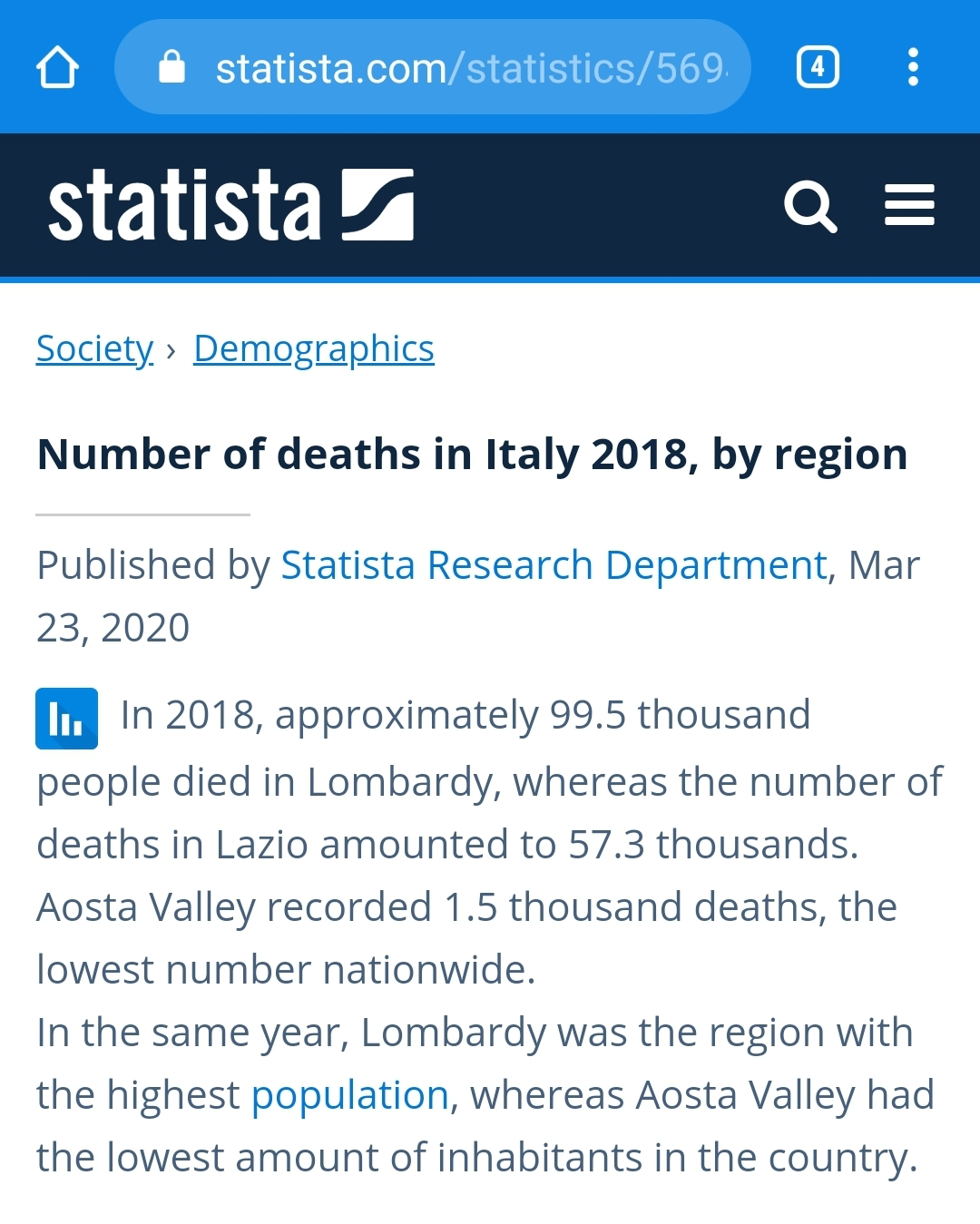 What's going on with the death rate in Italy? It's likely the same thing that was up last year, and the year prior, and the one before that. Evidently people have been dying from respiratory illnesses there for quite some time.