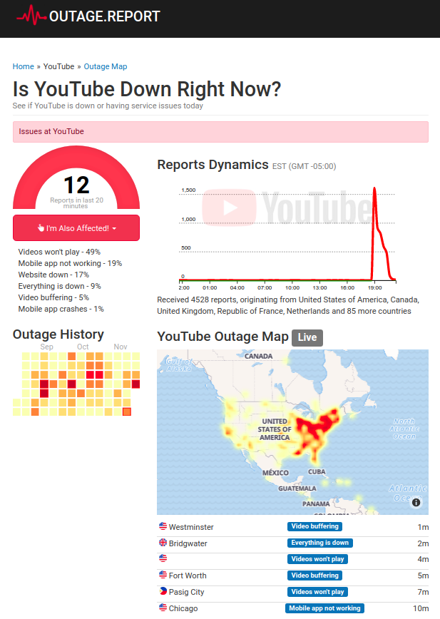 Apparently it was a worldwide outage. I checked the outage report and you definitely see a spike in reports of YouTube being down, and it is all over twitter, but it seems to be back on line now.