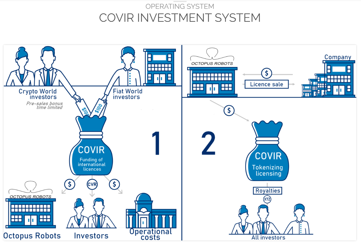The octopus robots Innovation has been with us for decades with origin from Cholet France dated 1987, at inception octopus Robert was named MCAI, it's has over the years experienced tremendous changes and so it occupies a leading position in the echelons of robots with designs that promotes autonomous, intelligent and modular kind of robots with high precision in terms of delivery. The use of Octopus robots as decontaminating agents in the building, pandemic, equipment, etc is possible because octopus robots in 2015 evolved into robots inundated with electronics, automotive and artificial vision that offers sanitary based services in extensive buildings, warehouses, airports, shopping malls and a lot of other Biosafety services. The COVID-19 pandemic in 2020 not just demand but also the public appeal level of octopus Roberts worldwide, in responding to the high demand it was discovered that the octopus Roberts lacks uniquely licensing and royalty management platform, the restriction of movements of humans made the digital currency the best option for processing transactions with octopus Robots. This problem and many more were the reasons for the octopus robot collaboration with blockchain project Covir.