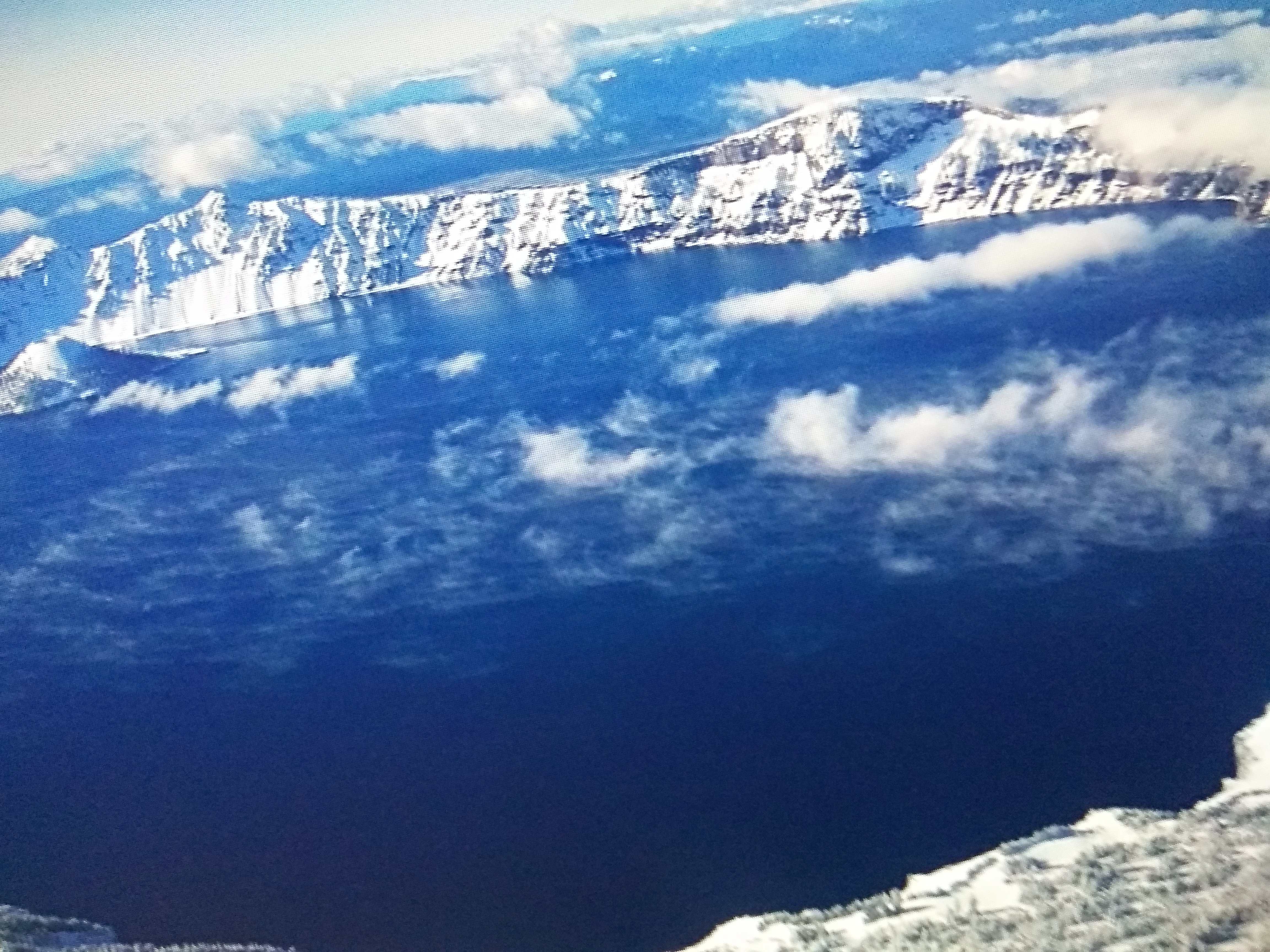 crater lake winter snow landscape