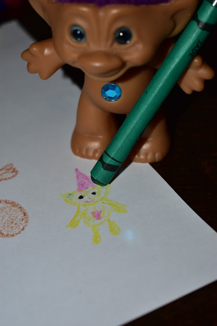 I really can't say why but just the sight of the trolls holding the crayons in an alluring attempt to draw puts a smile on my face