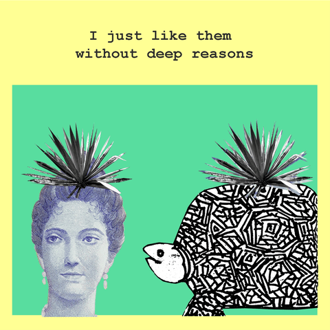 I like turtles is a little story or some facts about me that maybe nobody cares about but I still want to share them :) This series was published by Ramona Magazine, and I made it by cutting some pictures that I took and using parts of venezuelan paper money –which is the center of almost all my work– I mixed those elements using digital techniques to render them collage animations in GIF format.