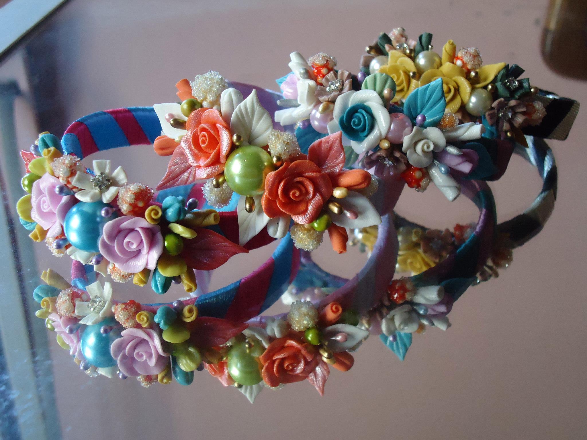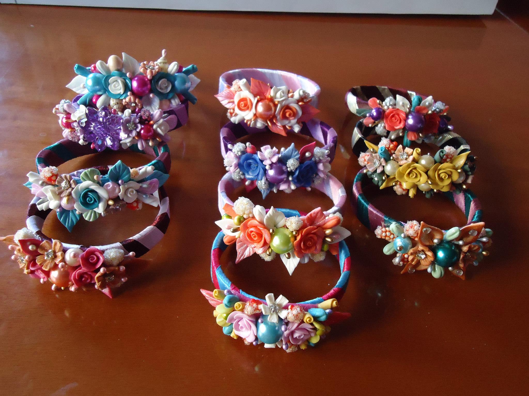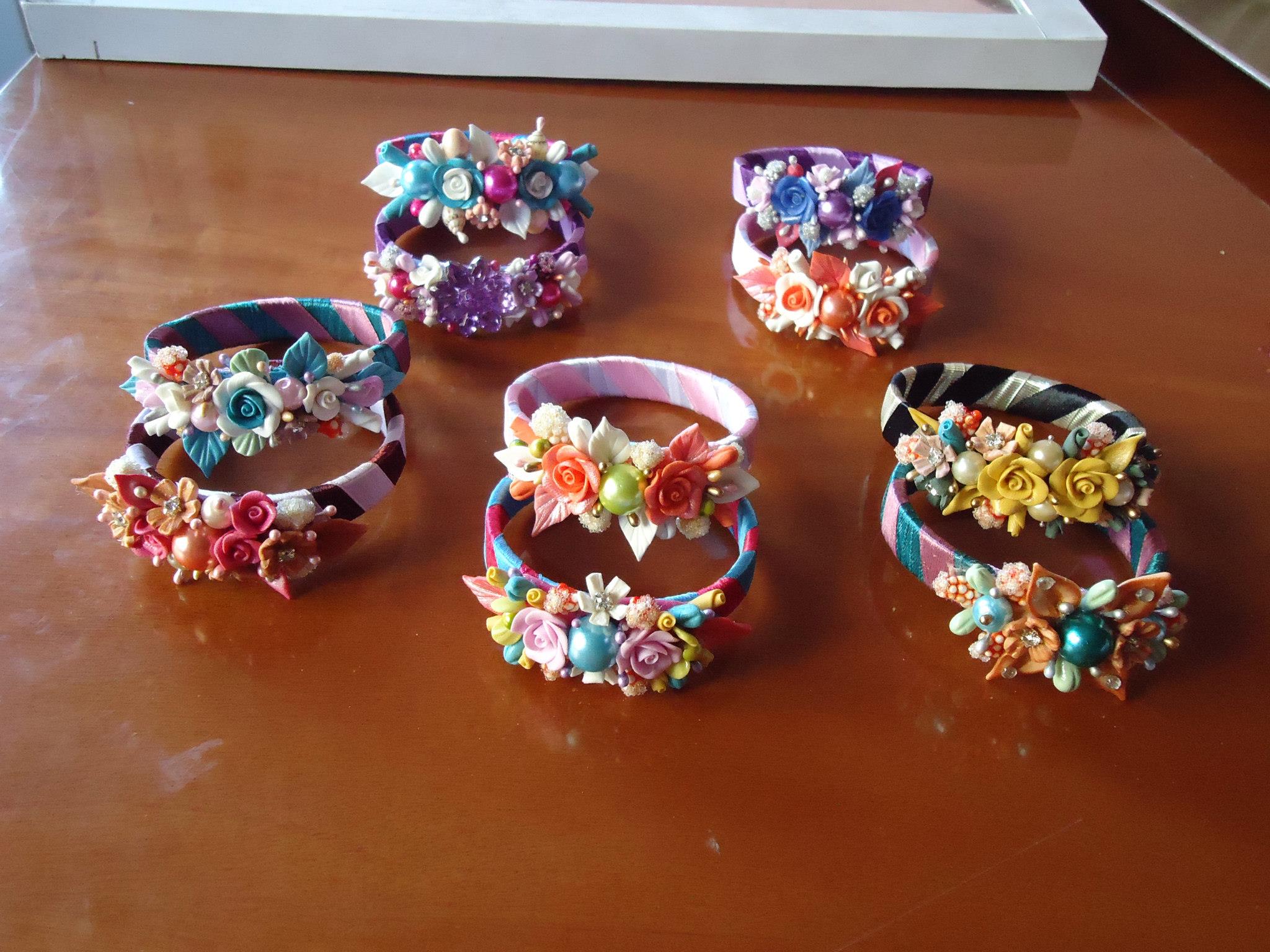 I made all flowers without molds and let them dry, later I added stonesto make them shiny.