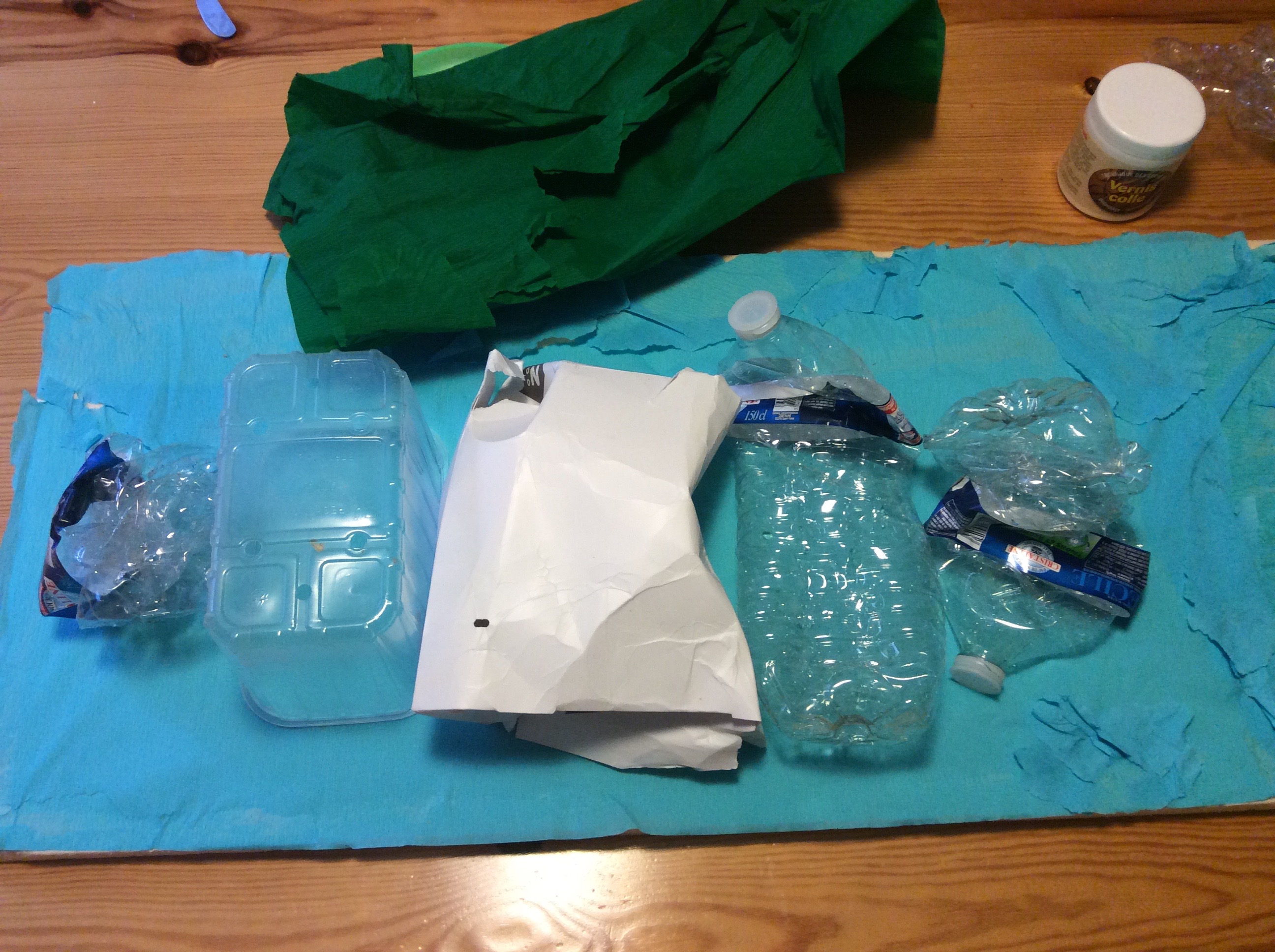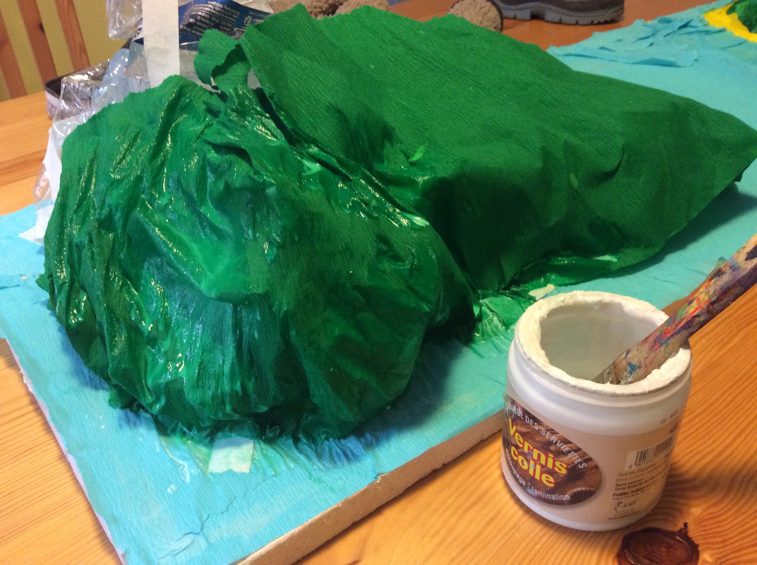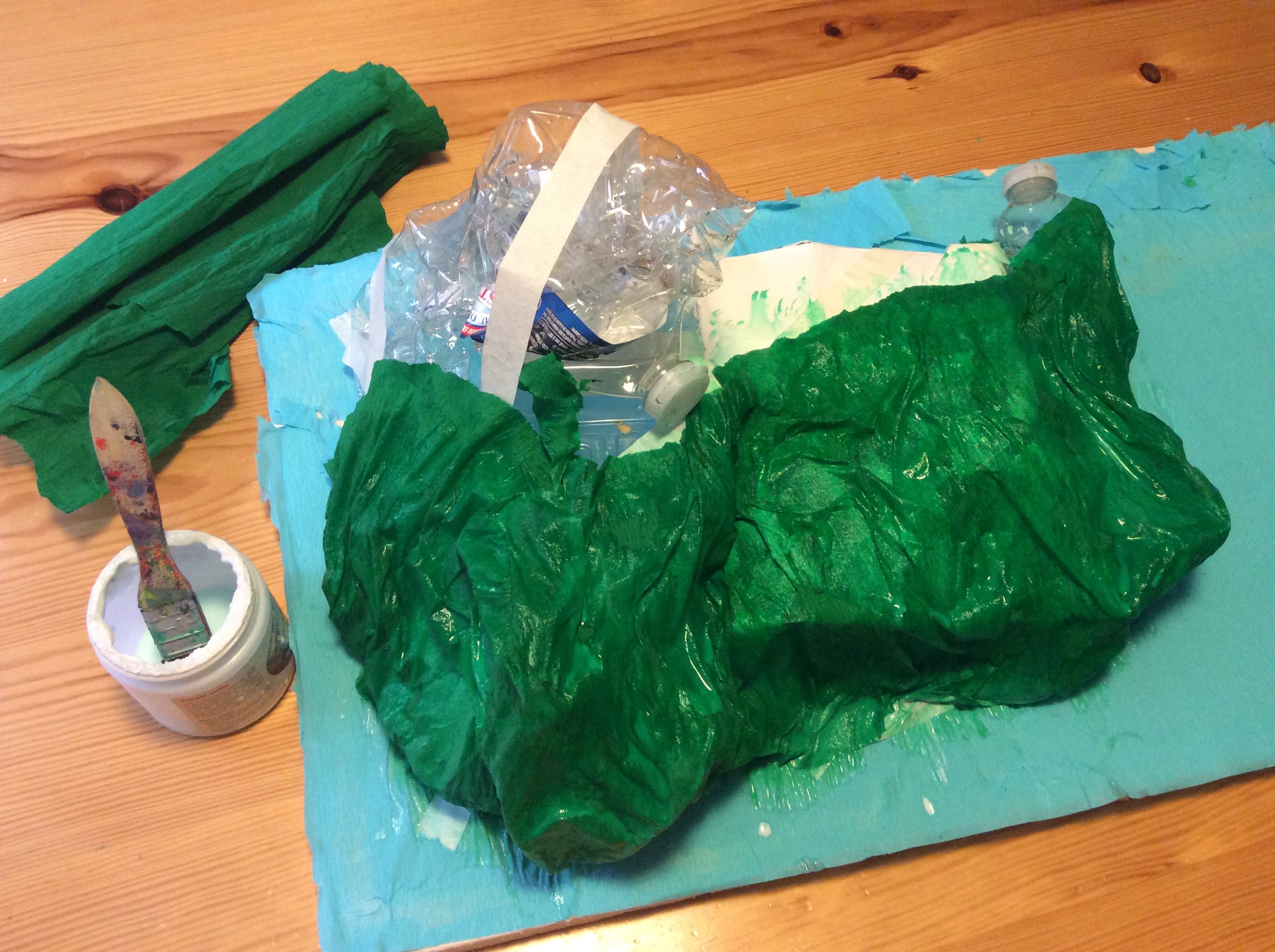 As you can see the watery glue does a great job creating the texture of the land, transforming rubbish into something much more beautiful.