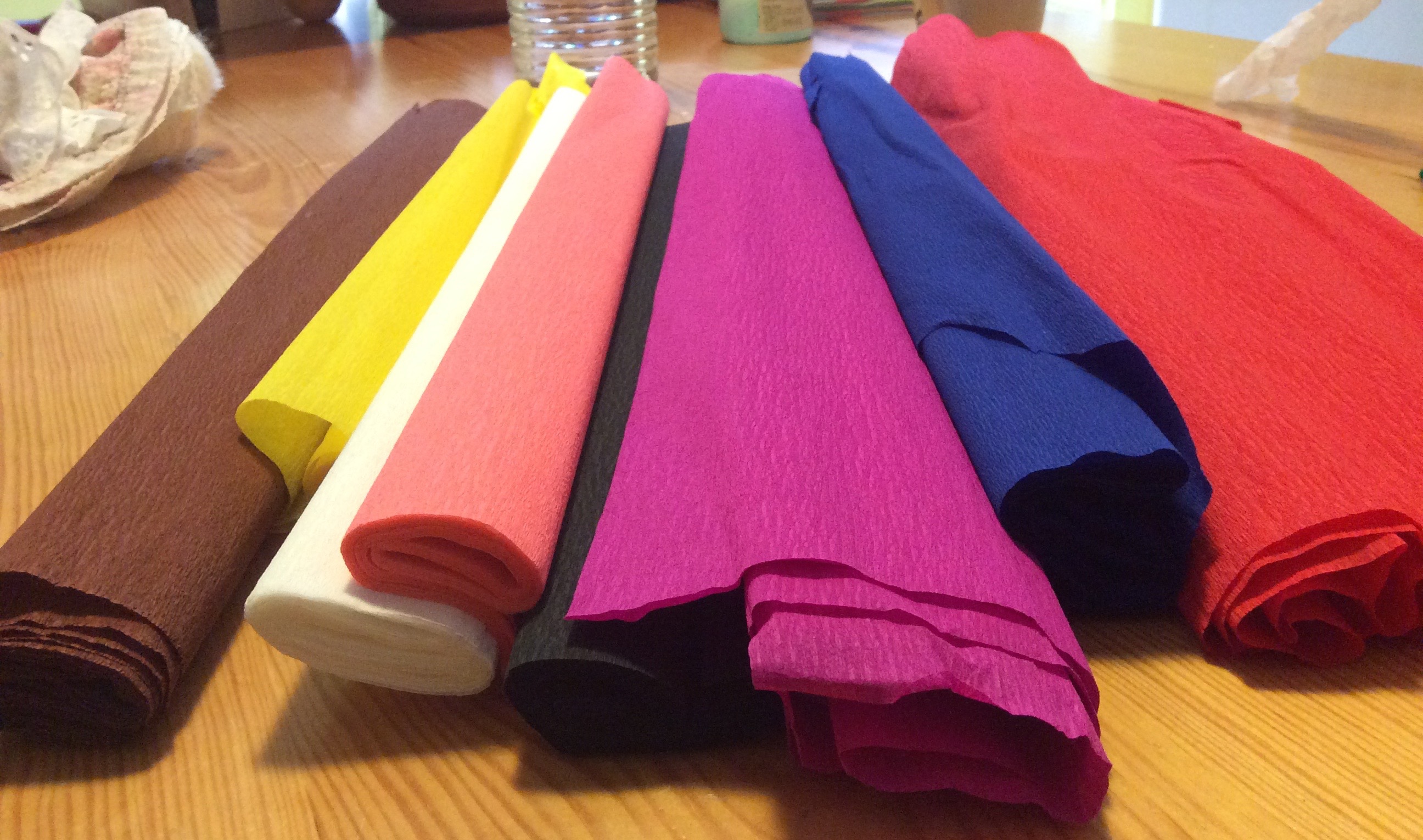 The only thing we needed to buy was the crepe paper. Beautiful stuff you can use for many things but watch out when it gets wet as the dye will run.