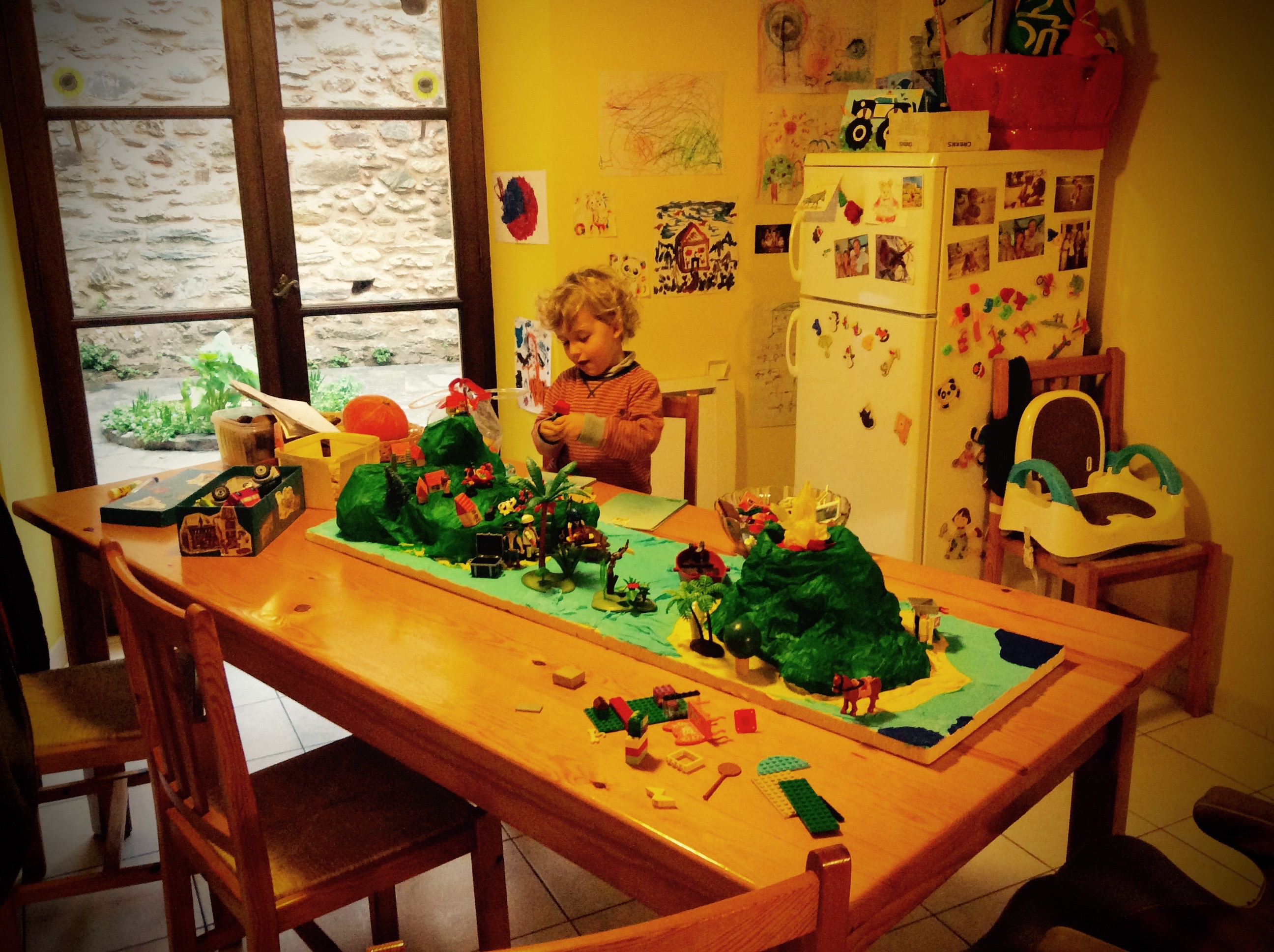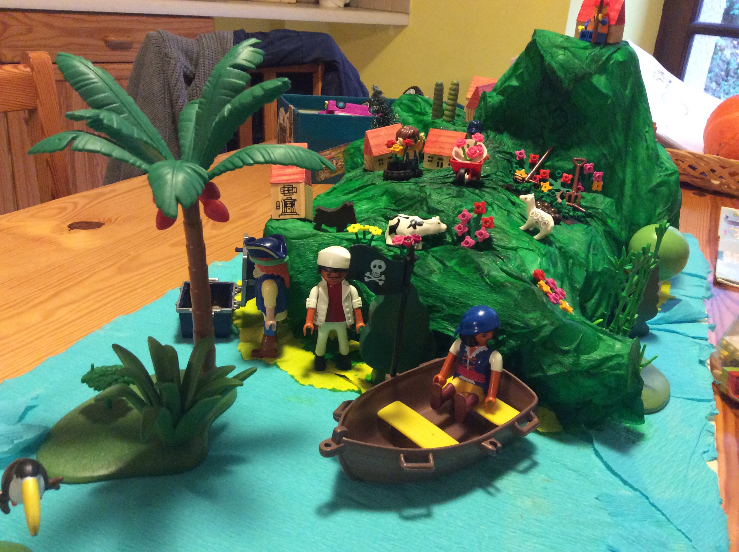 We had to wait around 5 hours for the new island to dry before Esteban could decorate it with his existing bits & pieces.