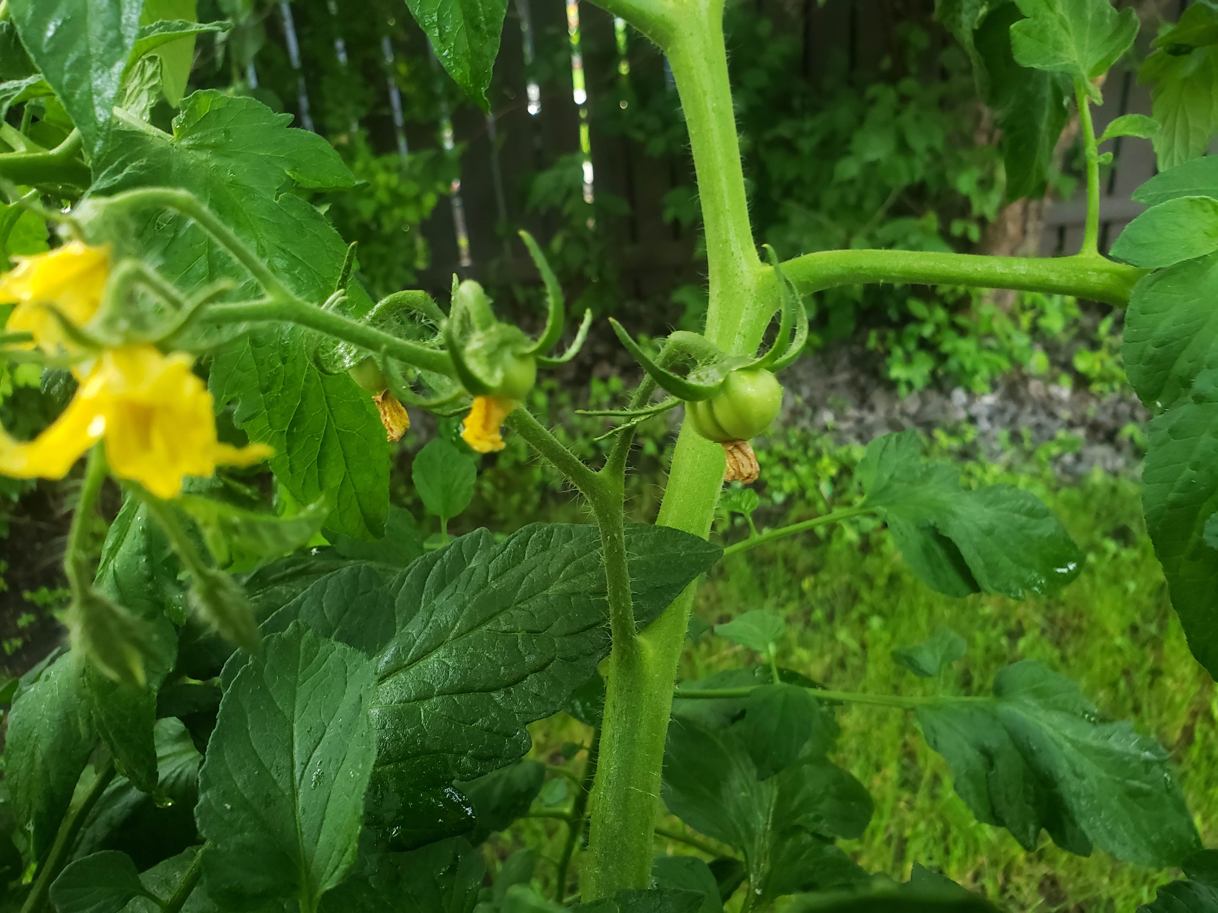 Here is one of the flowers that has started to turn into a tomato. Still very tiny but slowly becoming a nice bounty from the garden.