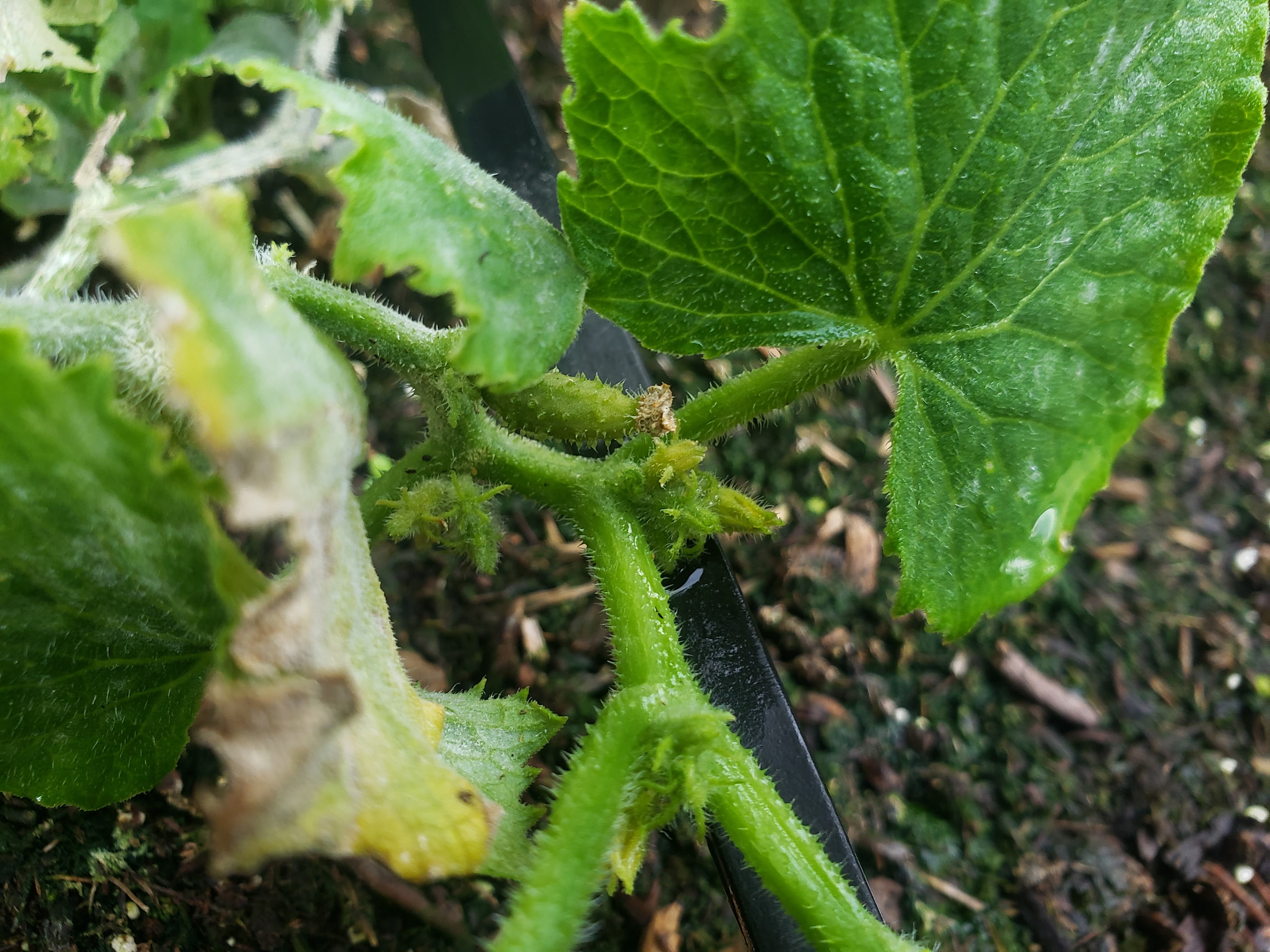 I tried to get a photo of one of the miniature cucumbers but it was a bit awkward and this was the best shot I ended up with. If you look real close you can pick out the cucumber but it kind of just blends in with the rest of the plant.