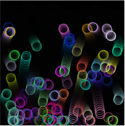 A simple exercise on movement of objects in which the circles lose their ability to bounce. By clicking on the animation we will see how the animation restarts and the spheres lose rebound strength. This exercise was programmed in javascript using a framework called processing and the html5 canvas tag.