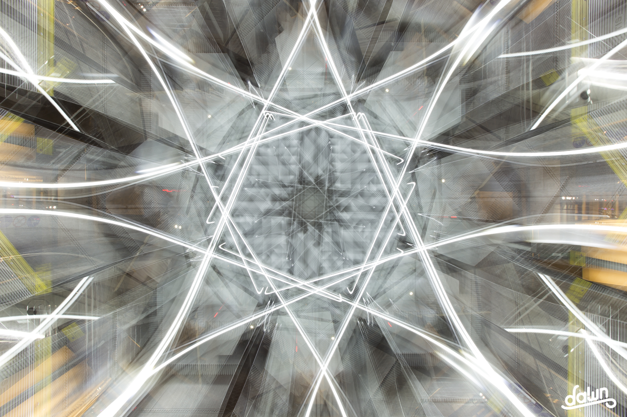 Lightpainting created in real time, captured to the camera in one single photographic frame.