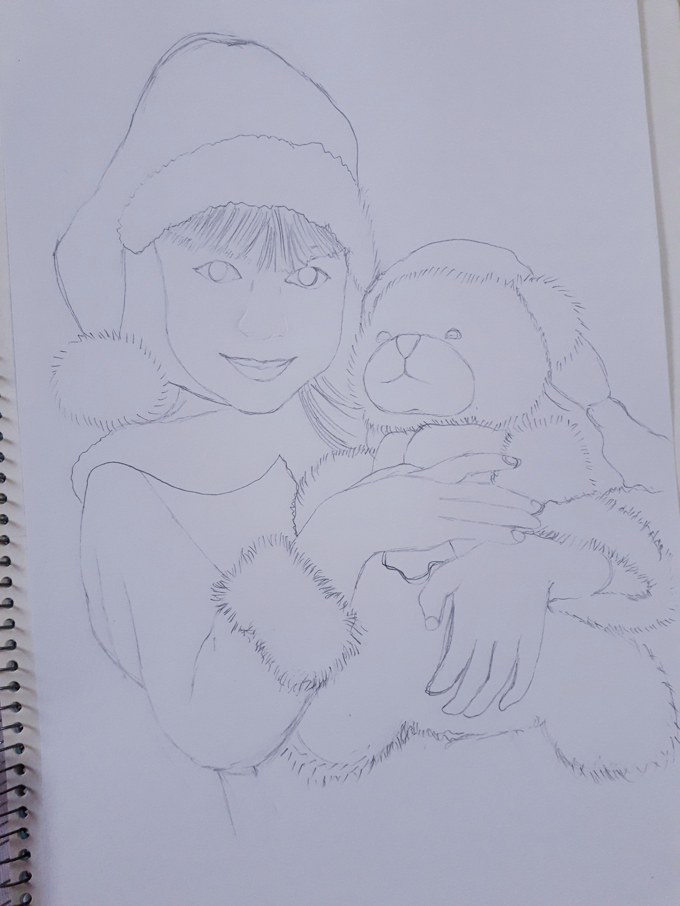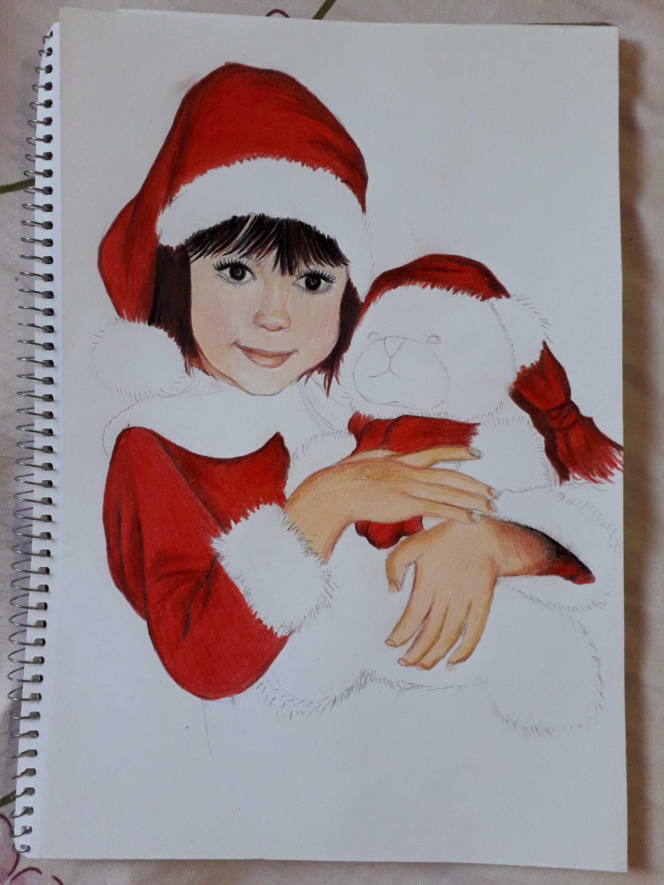 Since Christmas is my favorite time of year, I took the opportunity to recreate a picture of my little sister for a Christmas special at her school a few years ago, as one of my favorite pictures of her. As always I use colored pencils and some markers. I hope you like it!