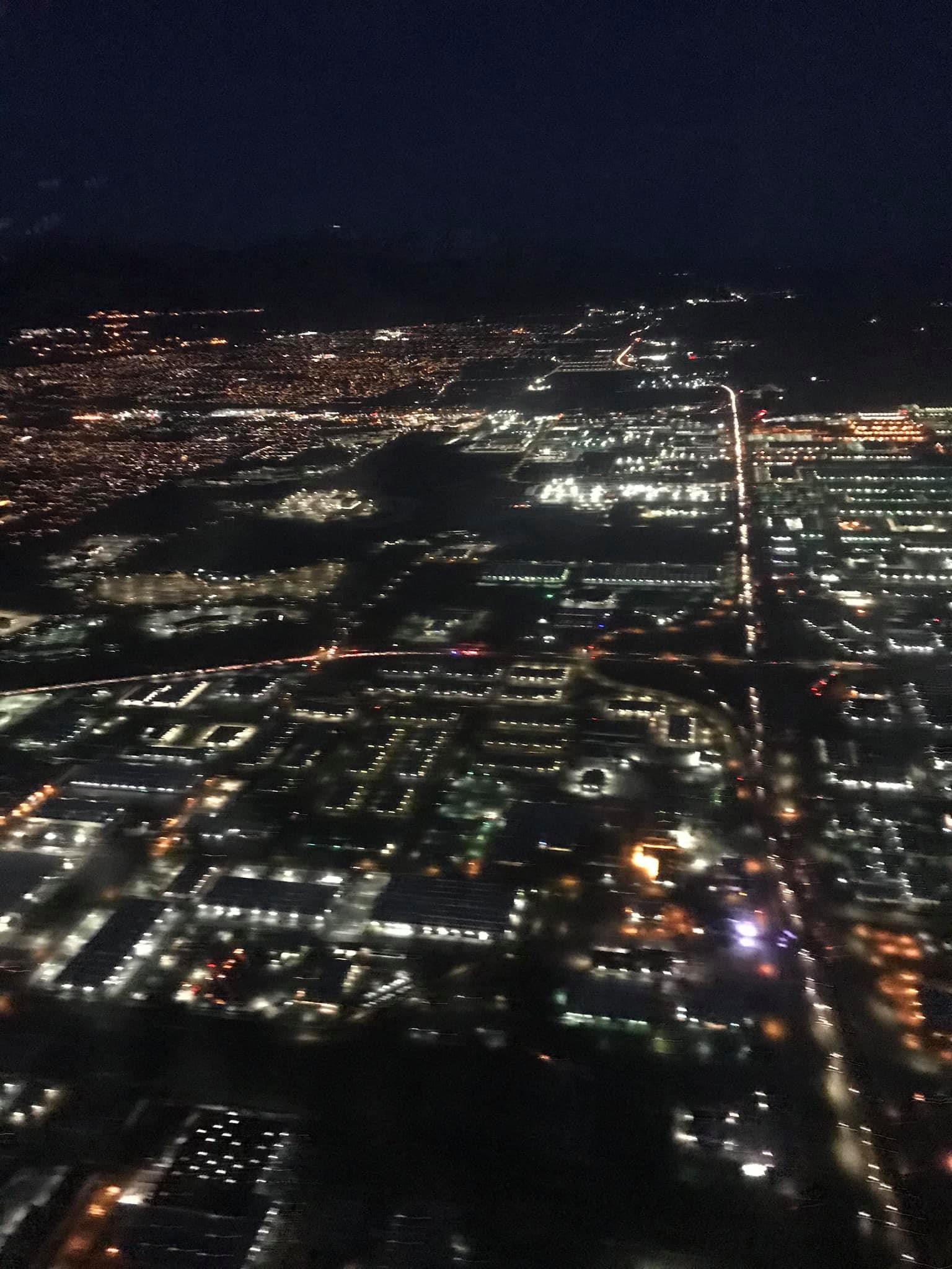 Flying has gotten much better since the last time I flew a few years ago, the take off and landing weren't as bad as I remembered (aside from one landing that was a SUPER hard hit to the ground). I am grateful I am short, because getting comfortable on the flight isn't as hard for me. I will add that to my list of "why it's great I am short". HA HA. It was morning when we flew out and the lights over the city were stunning! I was in awe flying across our area