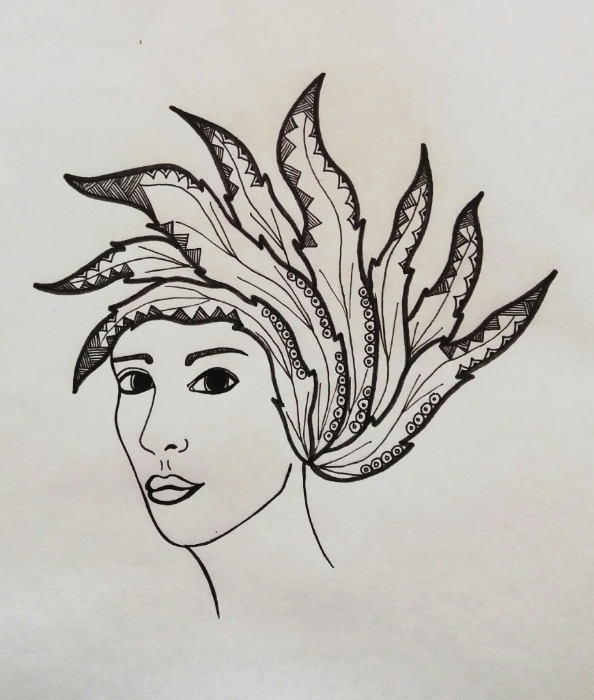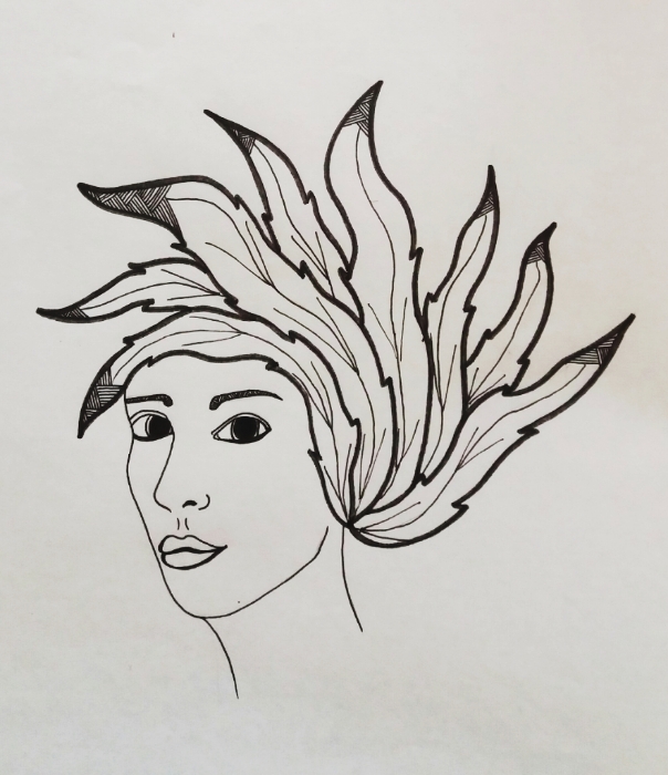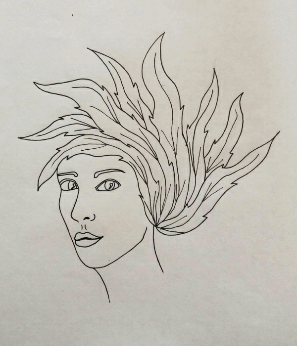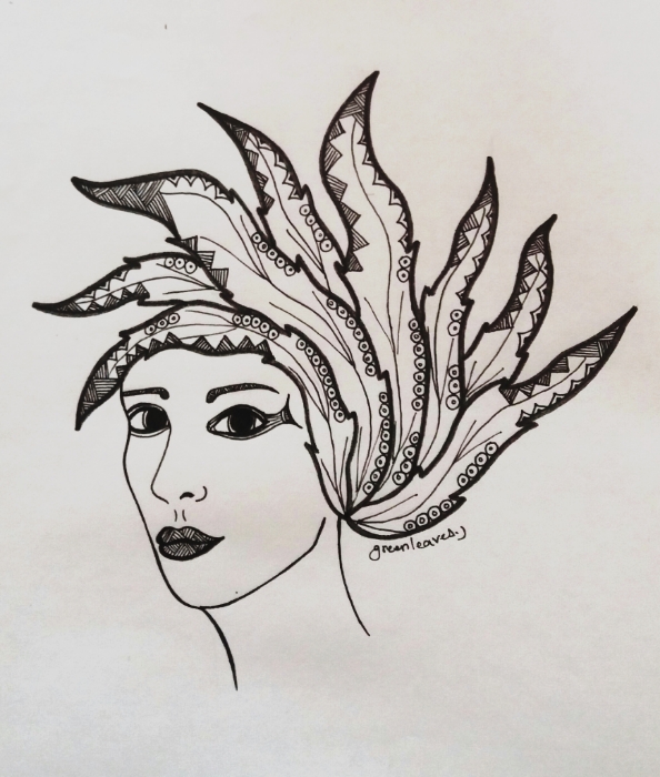 Leaf-like hair, I have drawn a black and white drawing for today, using rapid No.4, and I'll be using the colors soon.