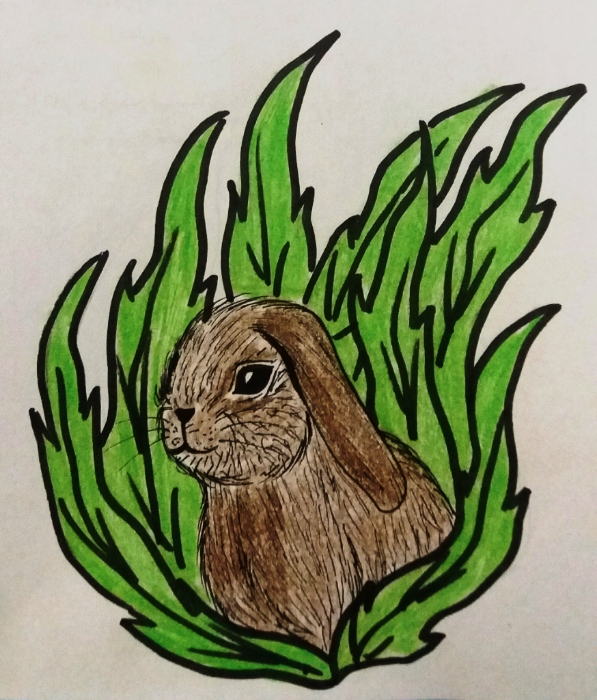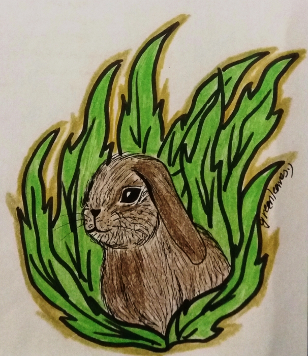 Rabbits are so smart and cute, I have another rabbit drawing for today, you can see leaves around it as always :)