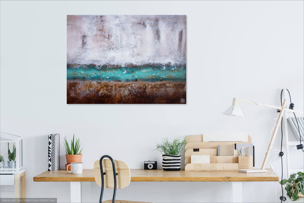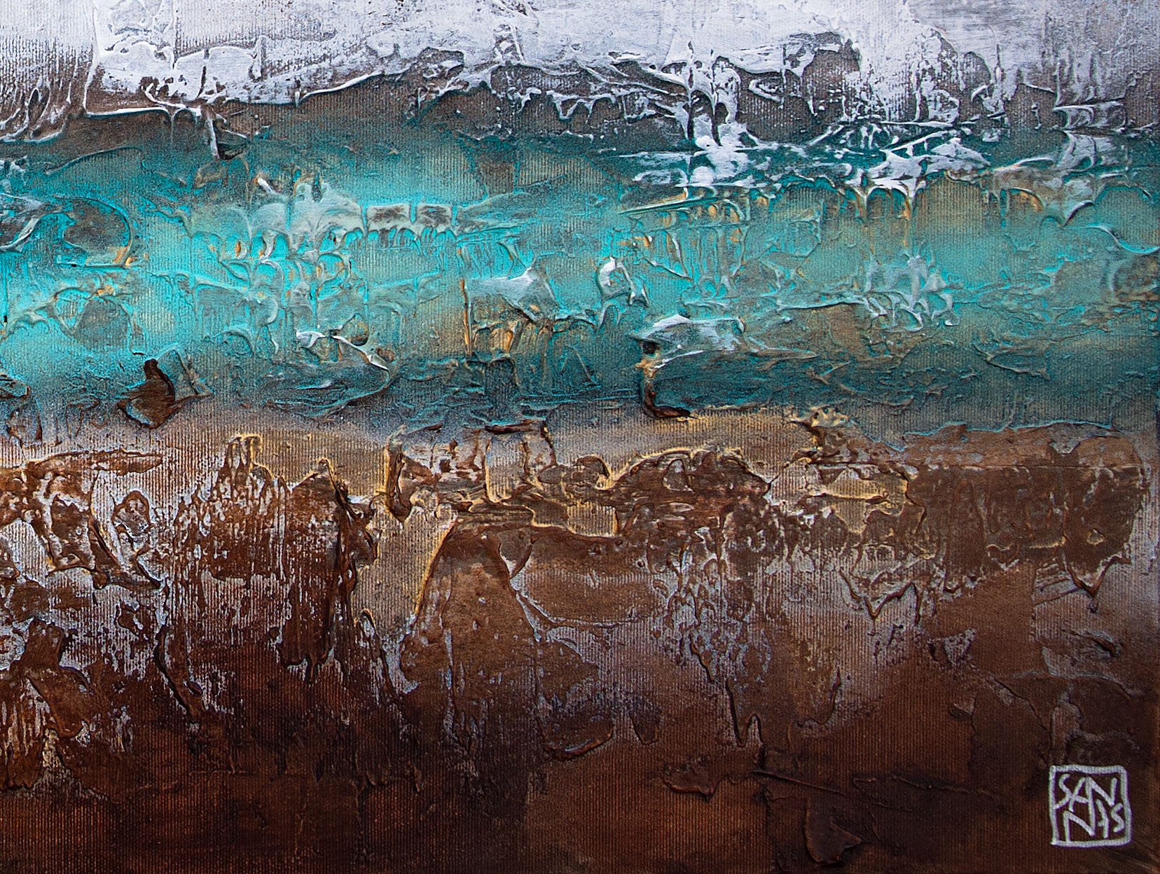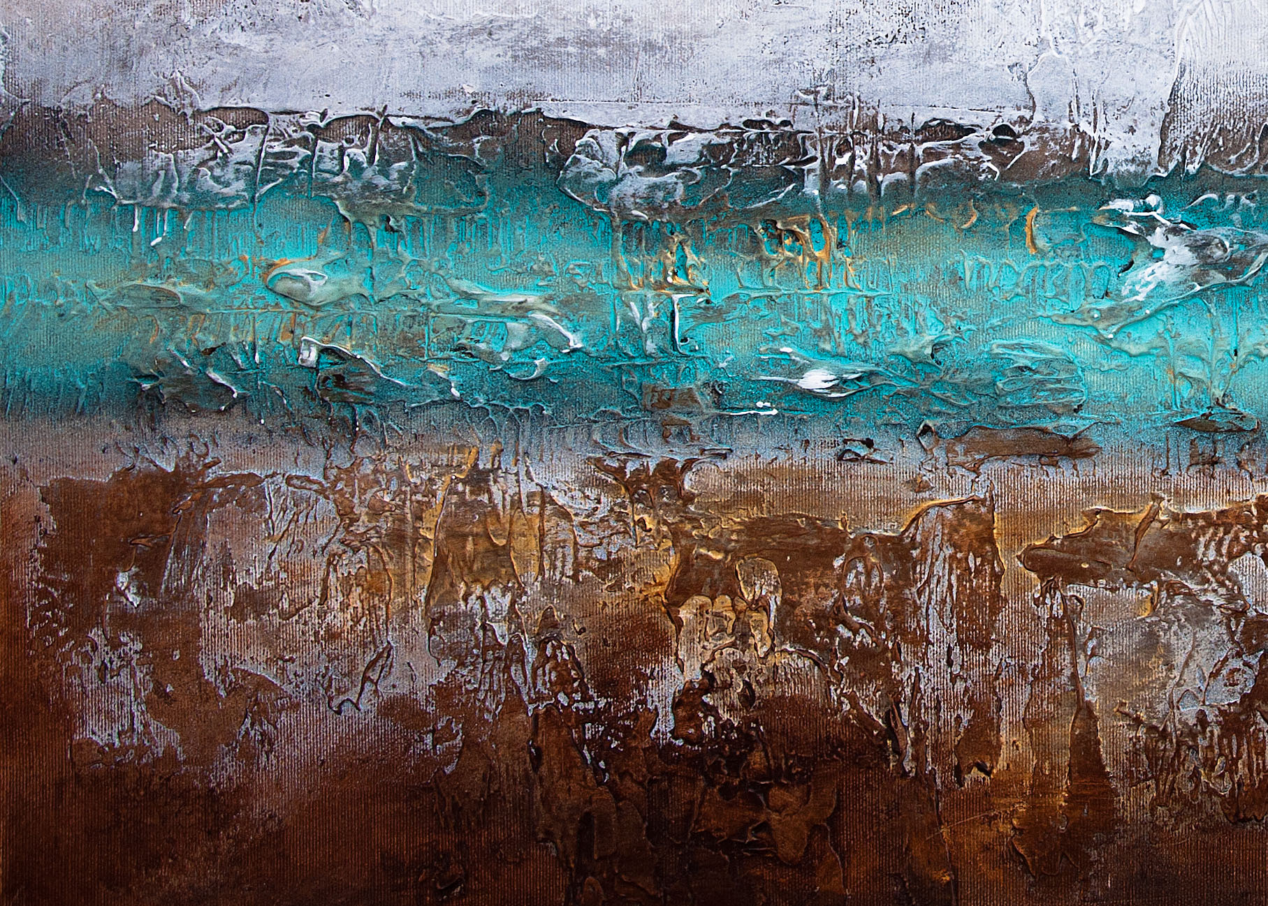 This is my beloved technique. First prepare canvas with modelling pastes. 3D relief. And then several layers of colors. I work not only with brushes.....