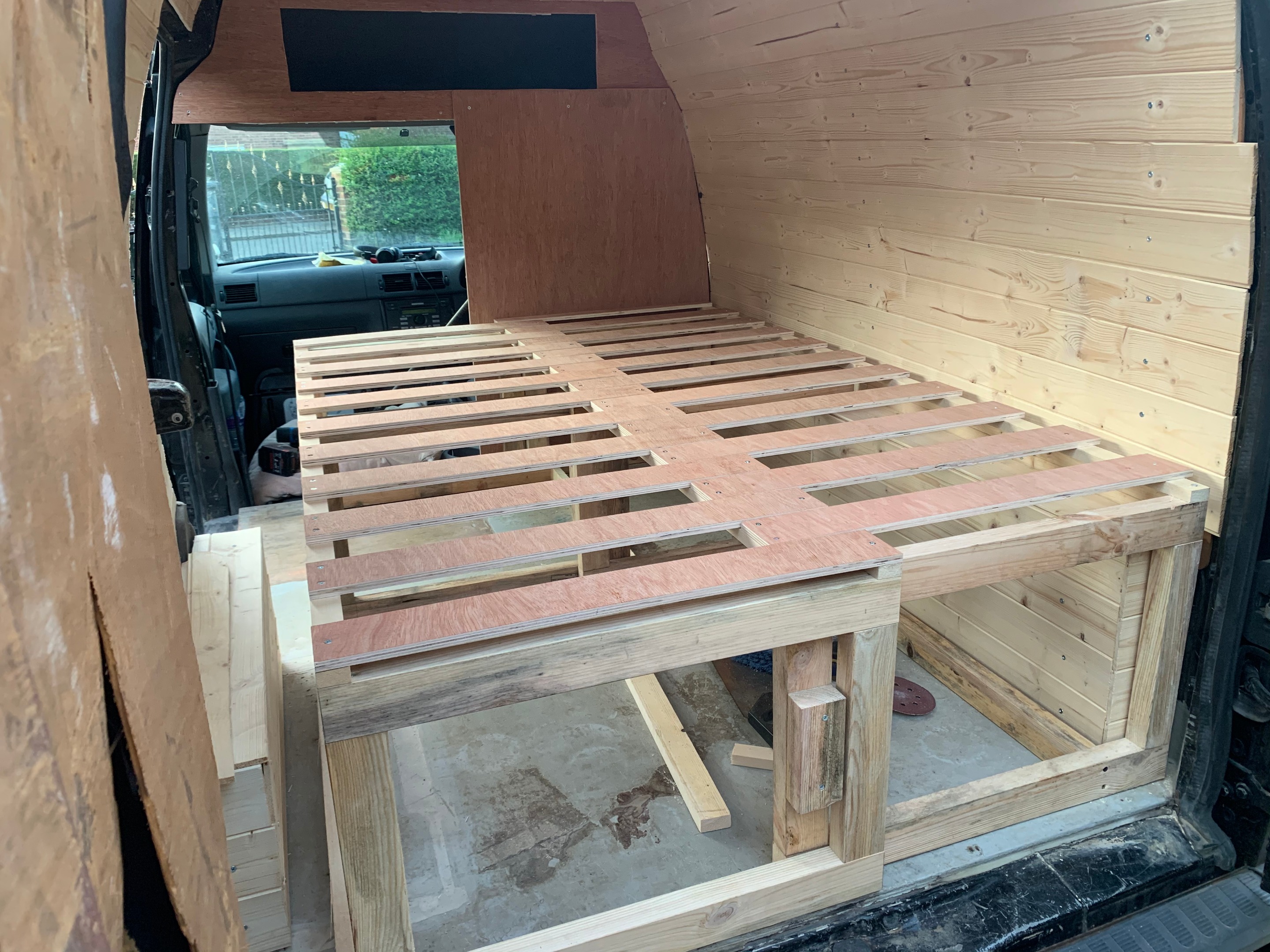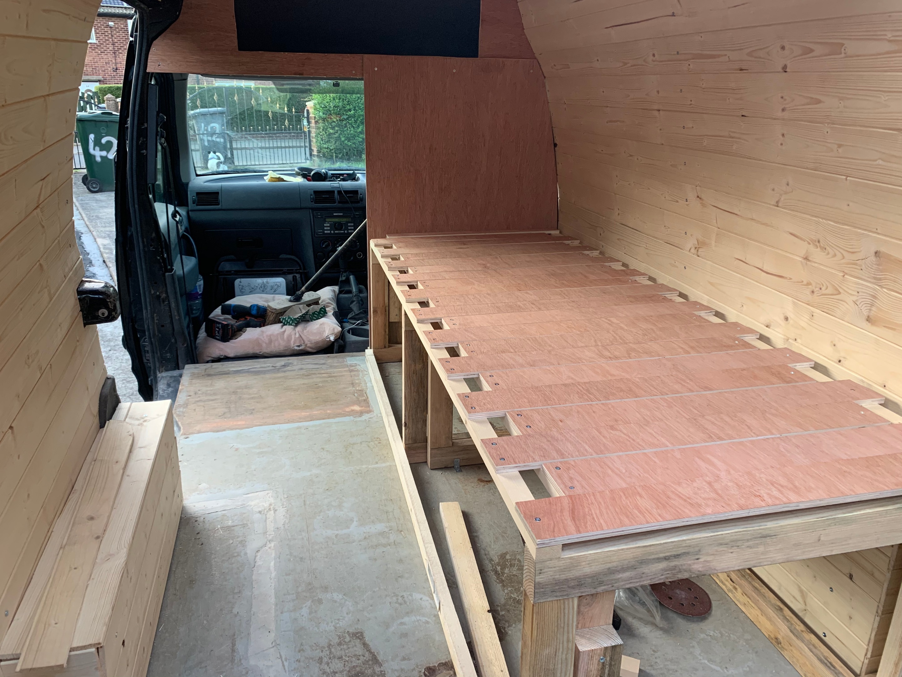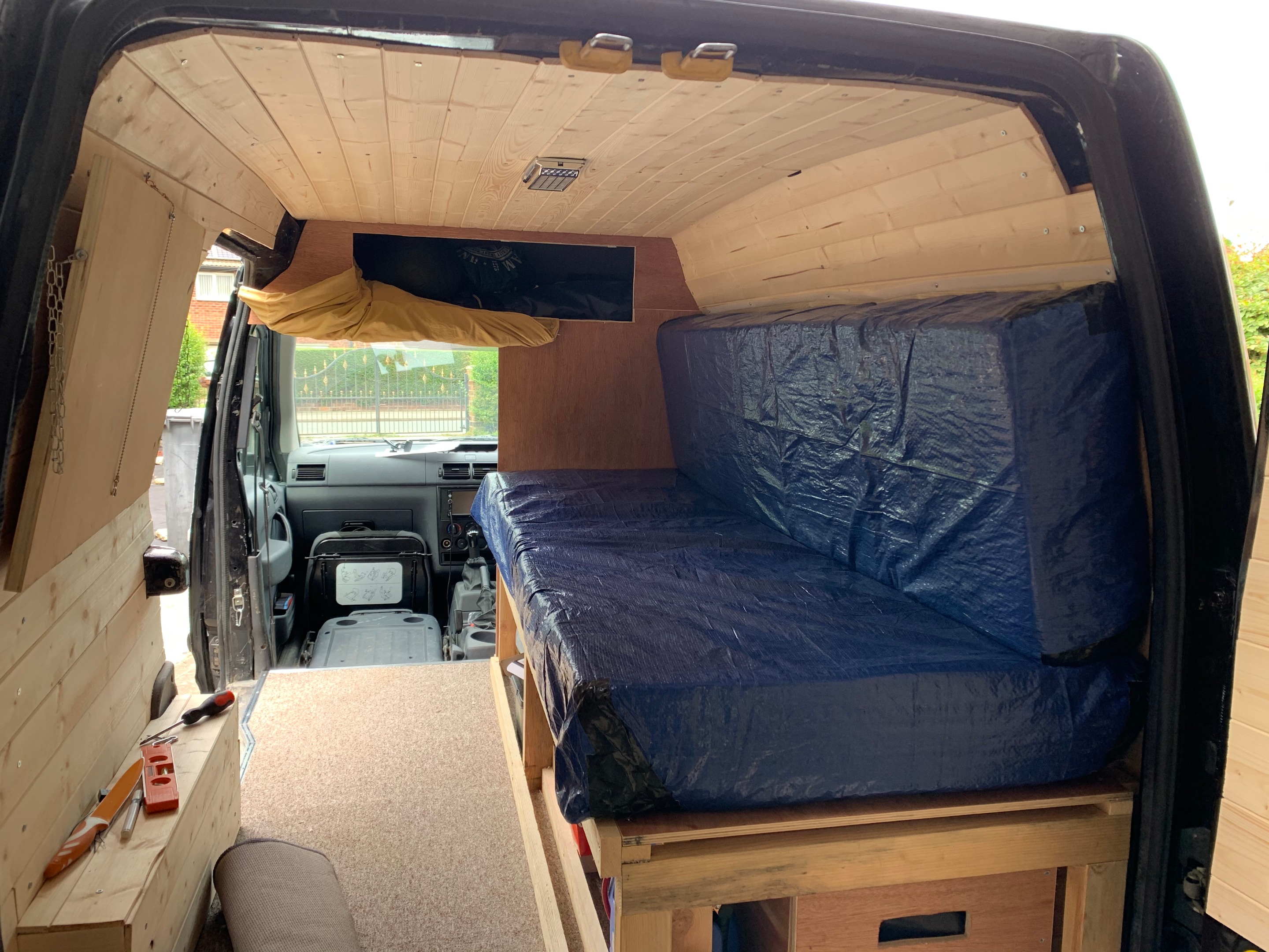 next was the cladding and to make some over head storage, we wanted to try and maximise the limited space