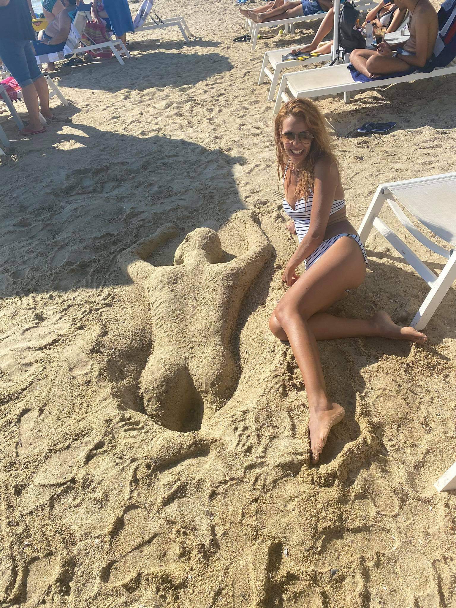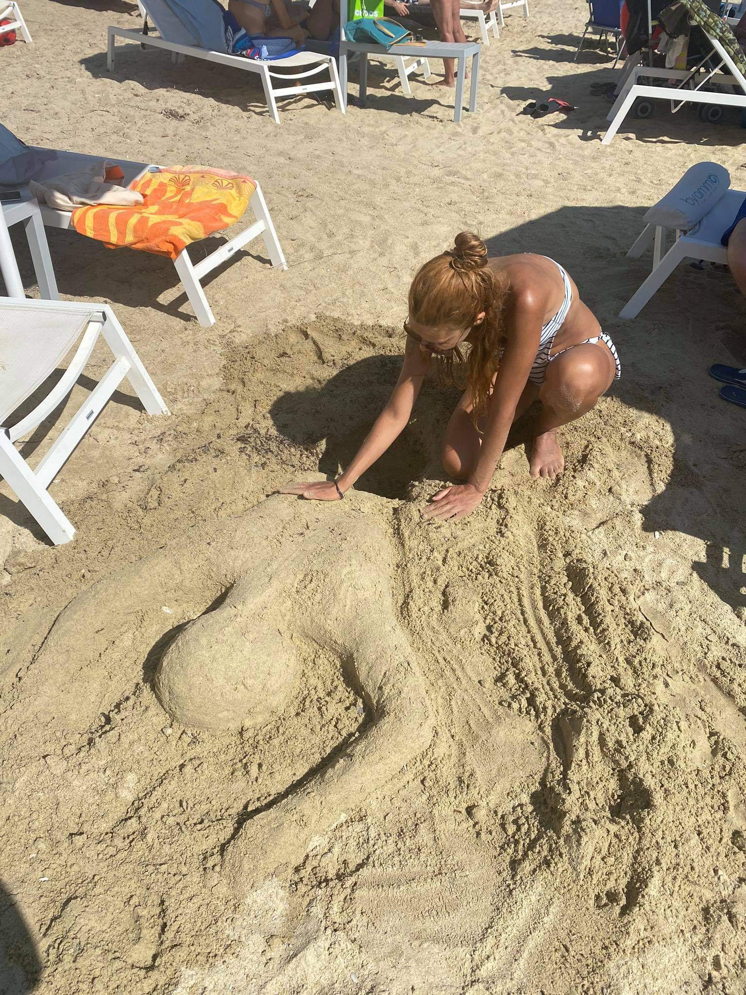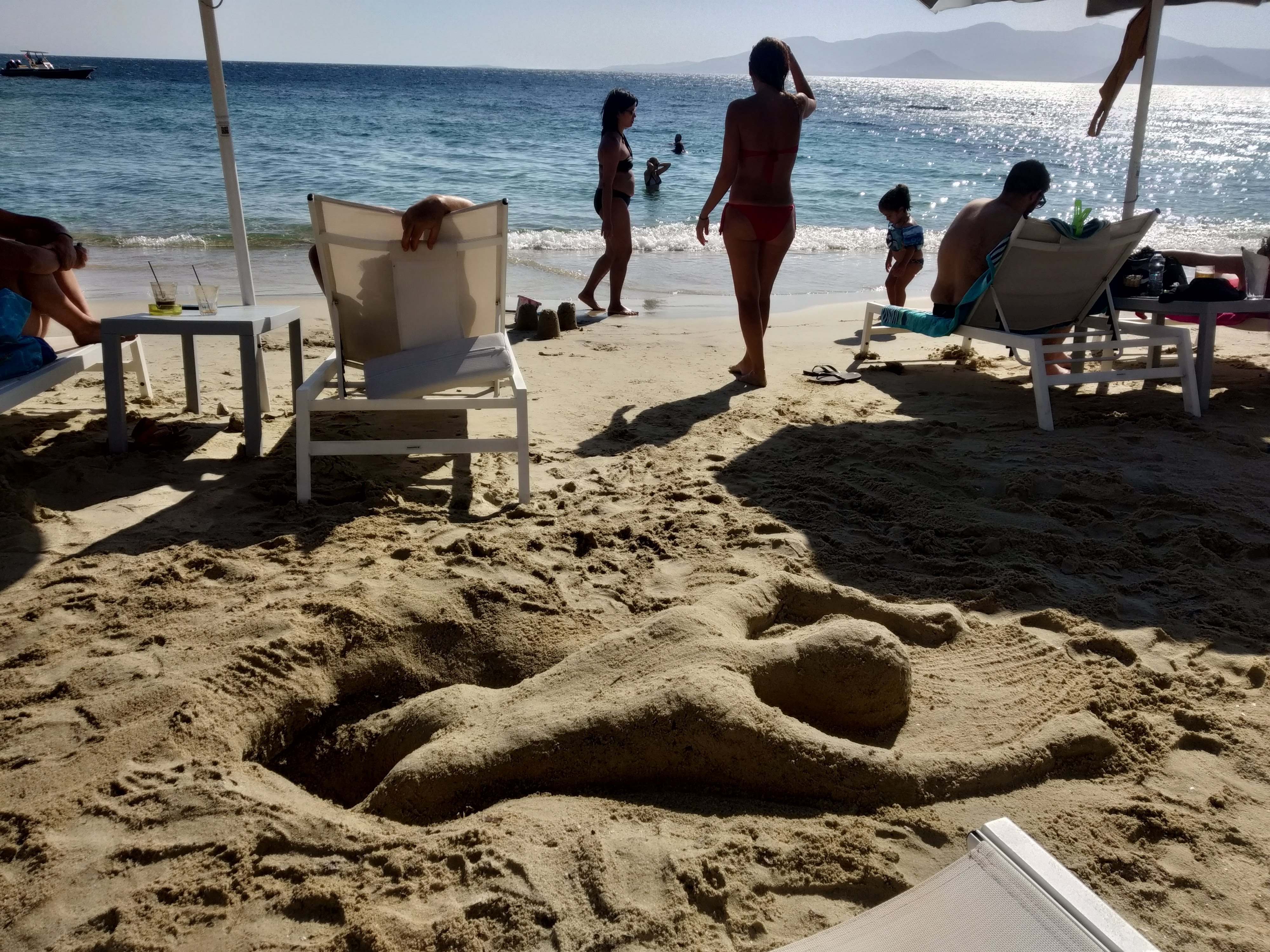 The sand was not exactly ideal to make a detailed sand sculpture, but it didn't stop us from having creative fun and also scaring everyone away... Really important to keep the distances these days. Especially when you visit an island so beautiful where everybody forgets there is a pandemic.