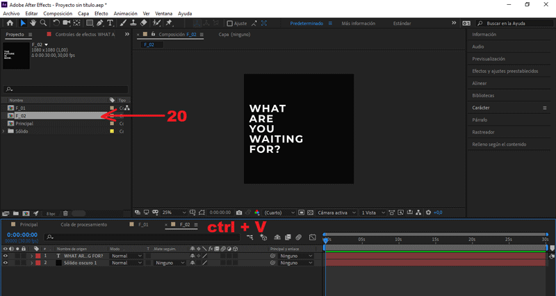 Seleccionamos la composición «F_02», presionamos ctrl + D.