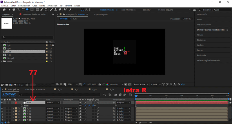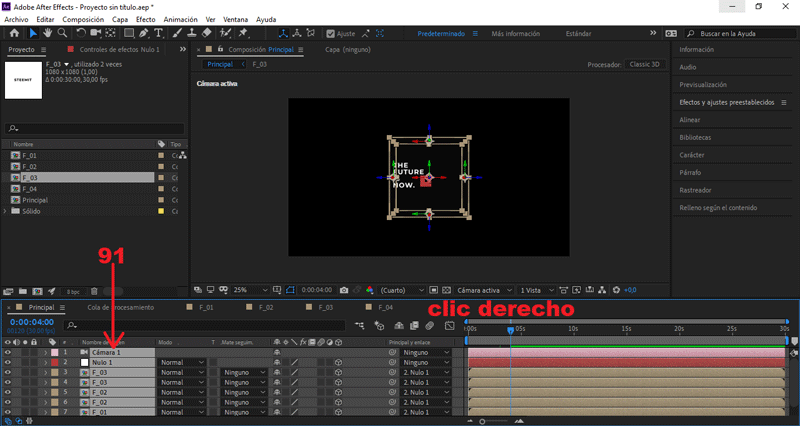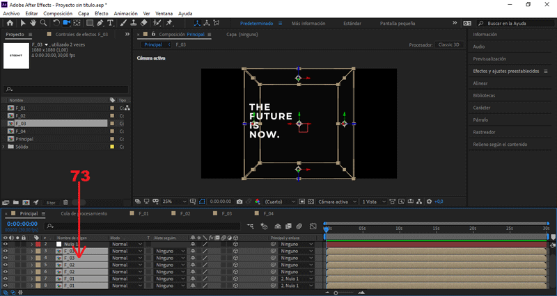 Abrimos la composición «F_03», presionando doble clic sobre ella.