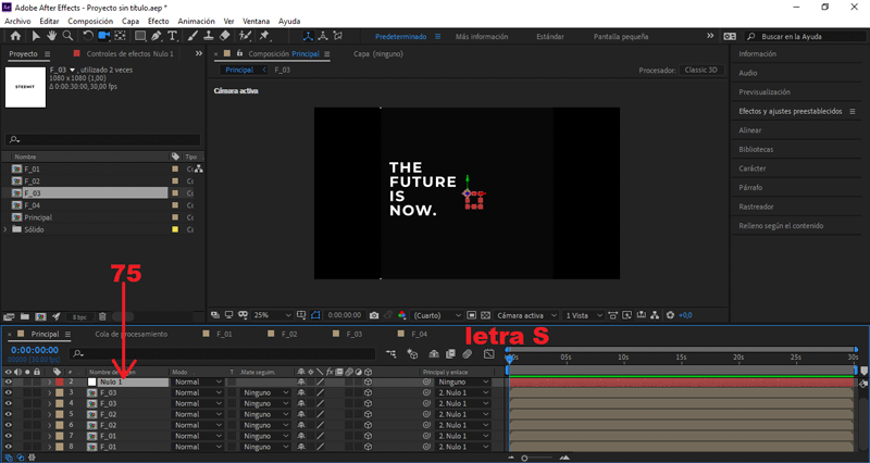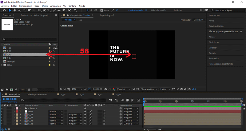 Seleccionamos la composición «F_03», presionamos ctrl + D.