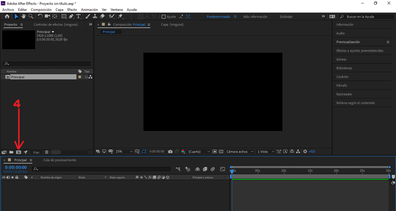 Abrimos la composición «Principal», presionando doble clic sobre ella.