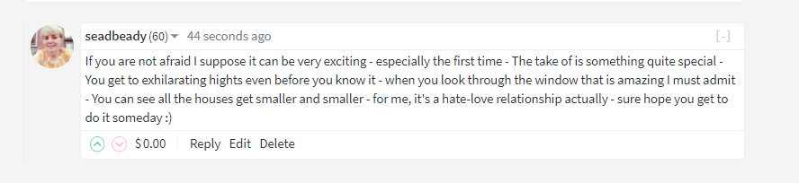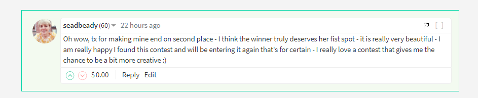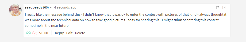 I always try to write a comment with meaning.....Some kind of feedback on what you wrote.....There is nothing worse than getting no comments on your post if you ask me.....But then again your post has to be about something and not just a meaningless picture.....That way people will be able to give some kind of feedback.....Don't you agree? 😊