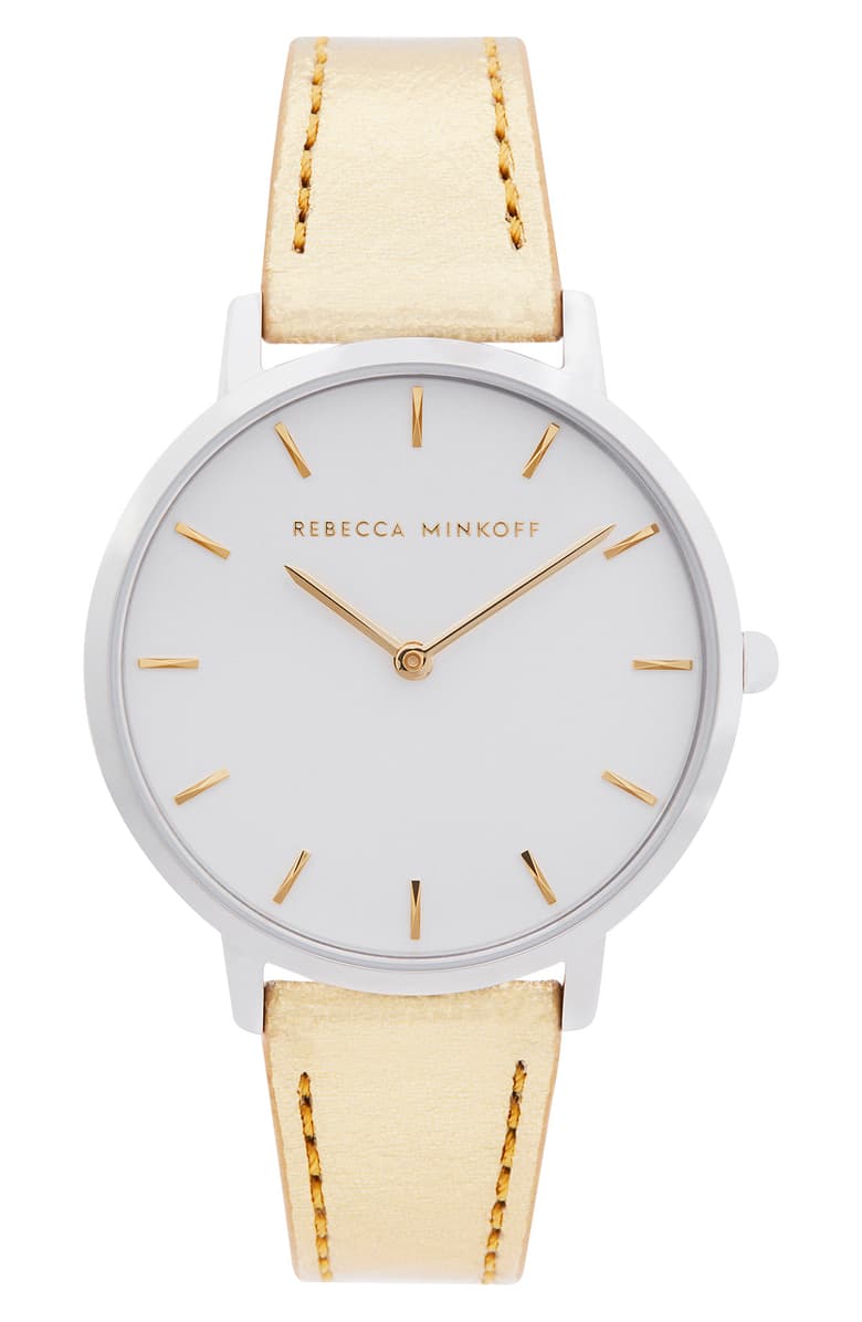 Major Metallic Leather Strap Watch, 35mm REBECCA MINKOFF