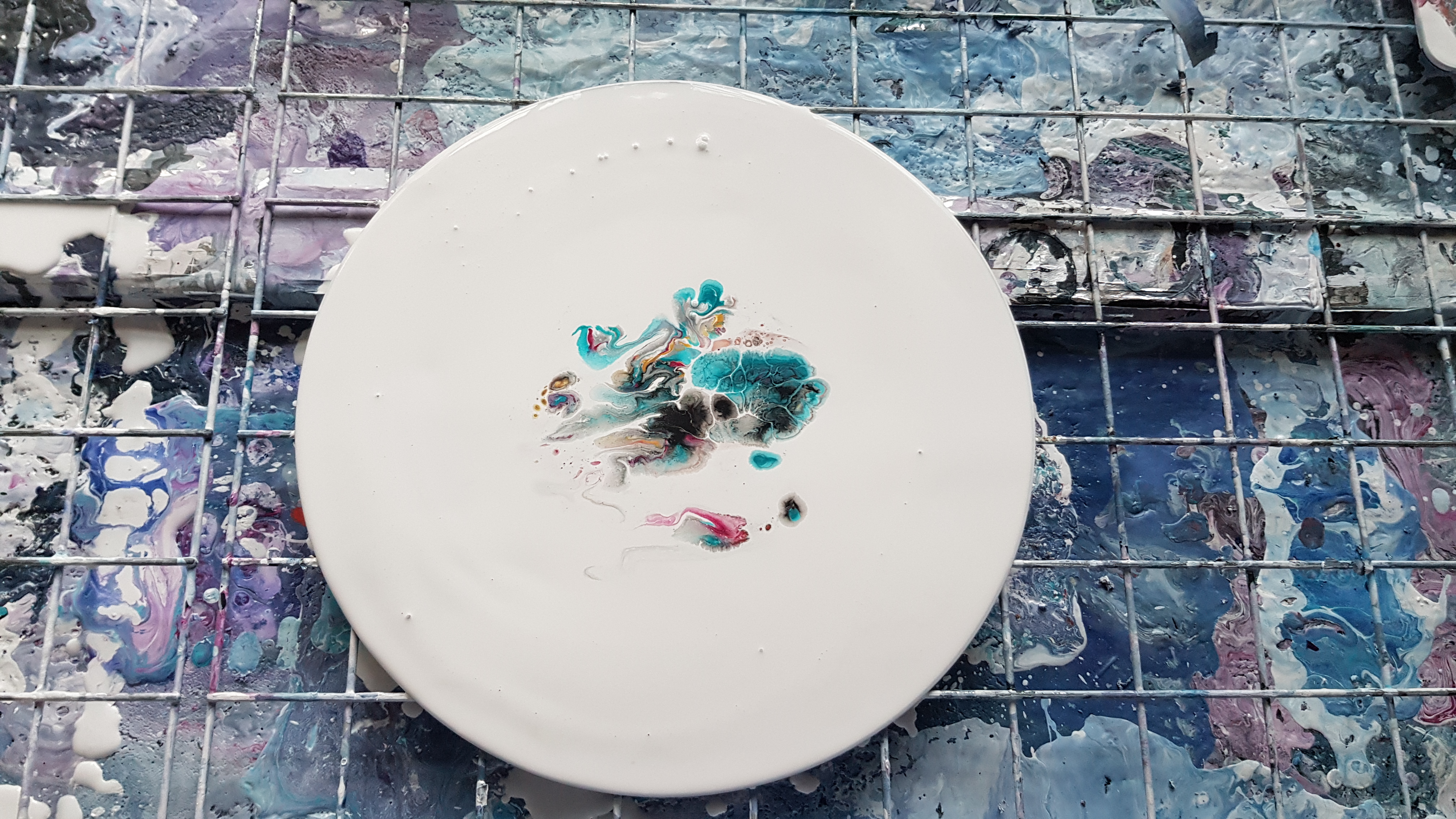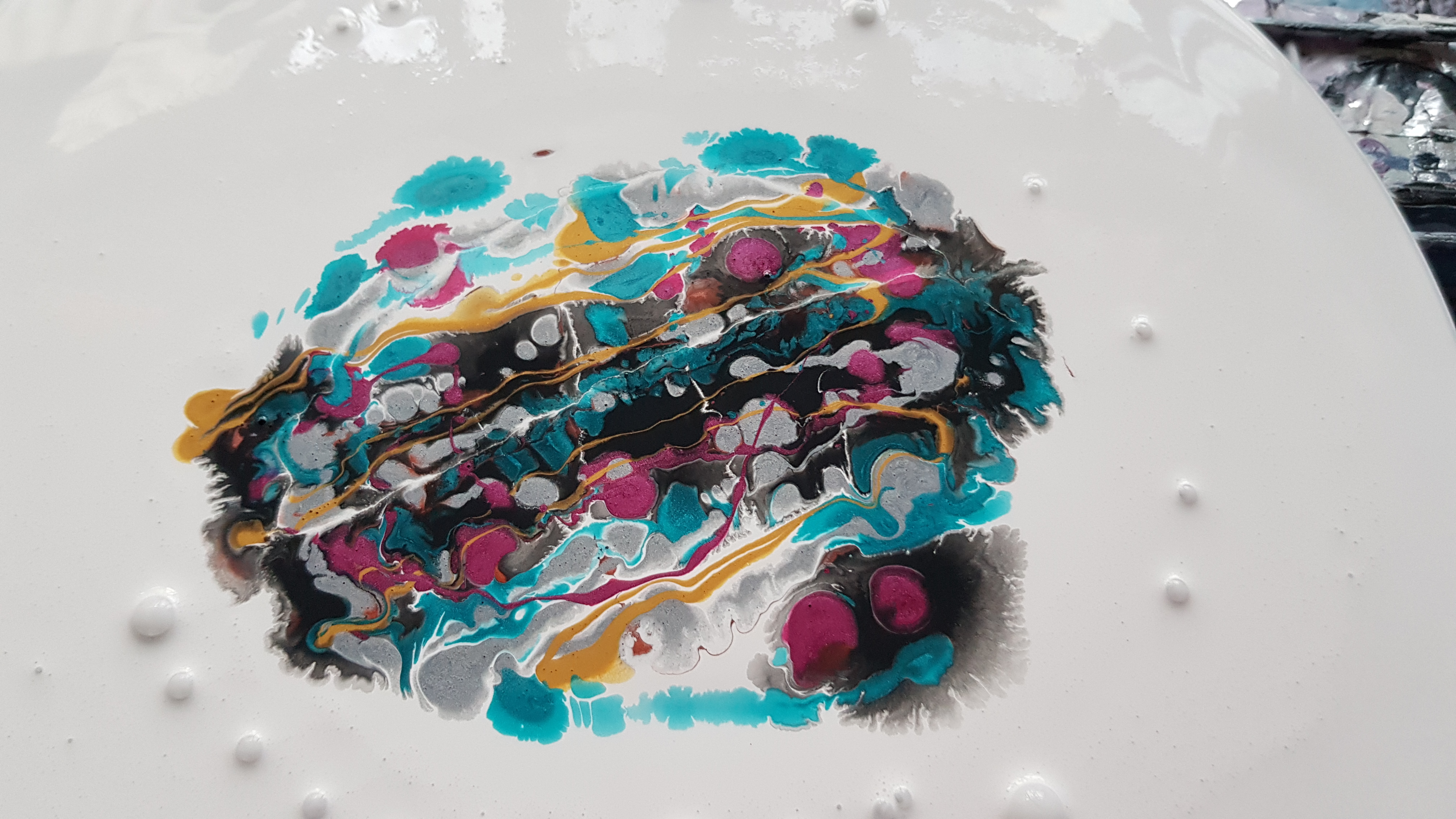 👇 After the hair dryer covered the splash with white paint as per dutch pours.