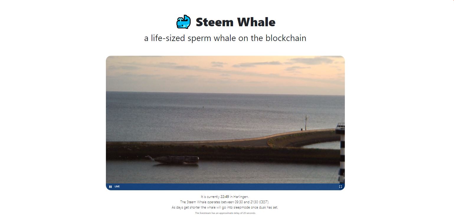 The whale itself sprays at random intervals, but through the website, Steemit users can donate some Steem and have the whale instantaneously spray a gush of water as a reward, (past the stream delay of course). There is a livestream that constantly monitors the whale structure, where users can see their intervention happen simultaneously!