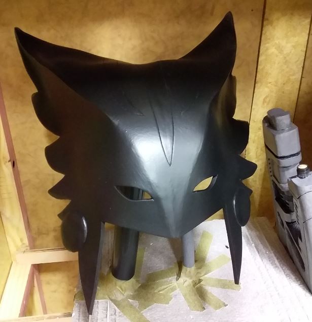 Taking off the masking tape revealed the now fully painted helmet! There's a few small places to patch up with some more black paint, but that's only a minor fix-up left to do.