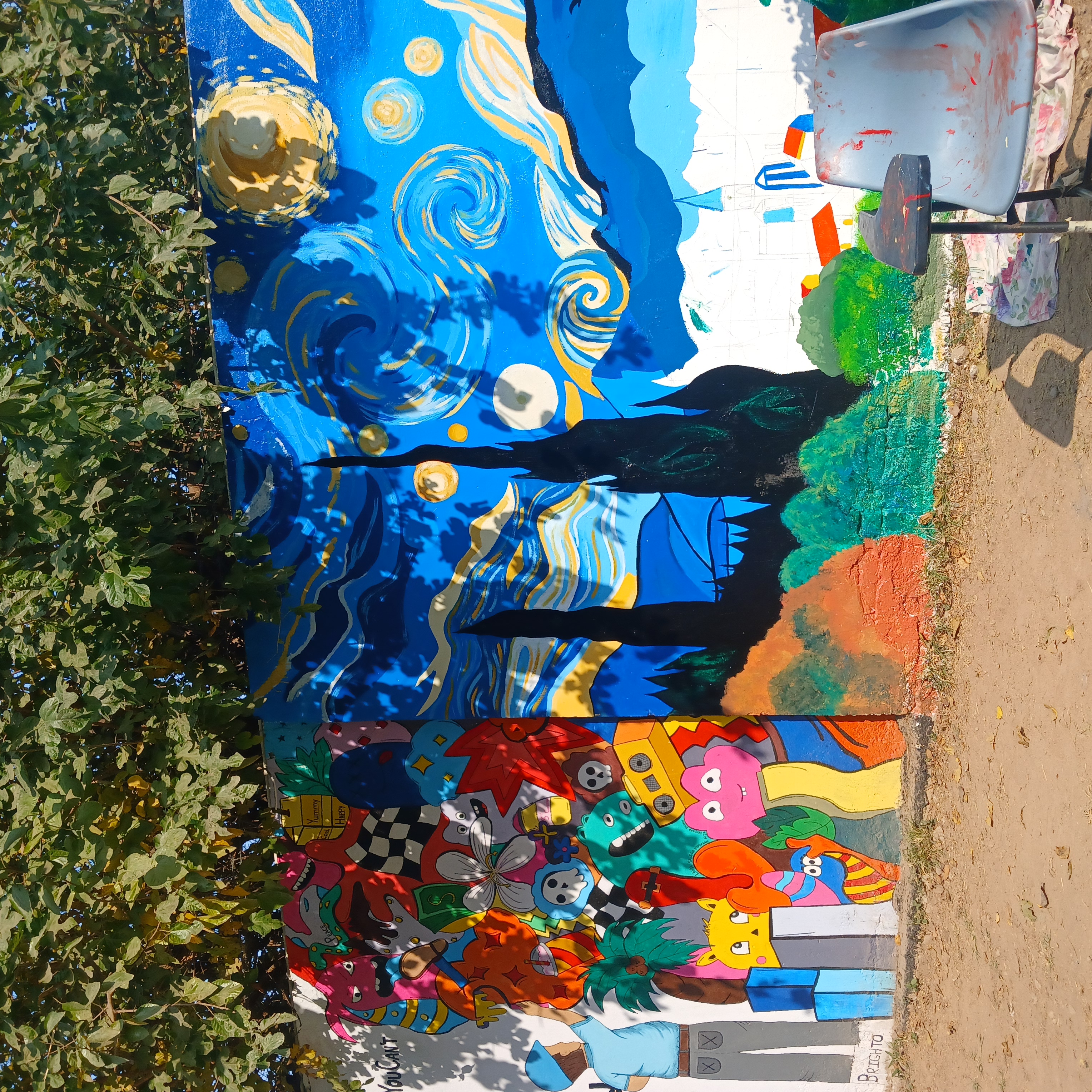 Another beautiful scenery in picture. I appreciate that hardworking of students no doubt it is time taken work .students paint walls with beautiful pictures.The last picture represent sky beauty and the beautiful sights of mountains with different colours.