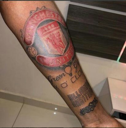 A Nigerian die hard Manchester United fan tattoo Manchester United logo in his arm. He took to his instagram page to show the world the newly tattoo he got for the love he has for Manchester United.