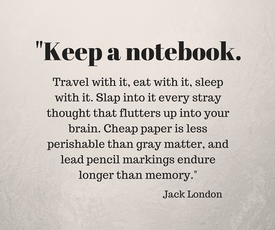 For creatives, this is the really good stuff. If you take nothing else away from this article, take away this Jack London quote: “Keep a notebook. Travel with it, eat with it, sleep with it. Slap into it every stray thought that flutters up into your brain. Cheap paper is less perishable than gray matter, and lead pencil markings endure longer than memory.”