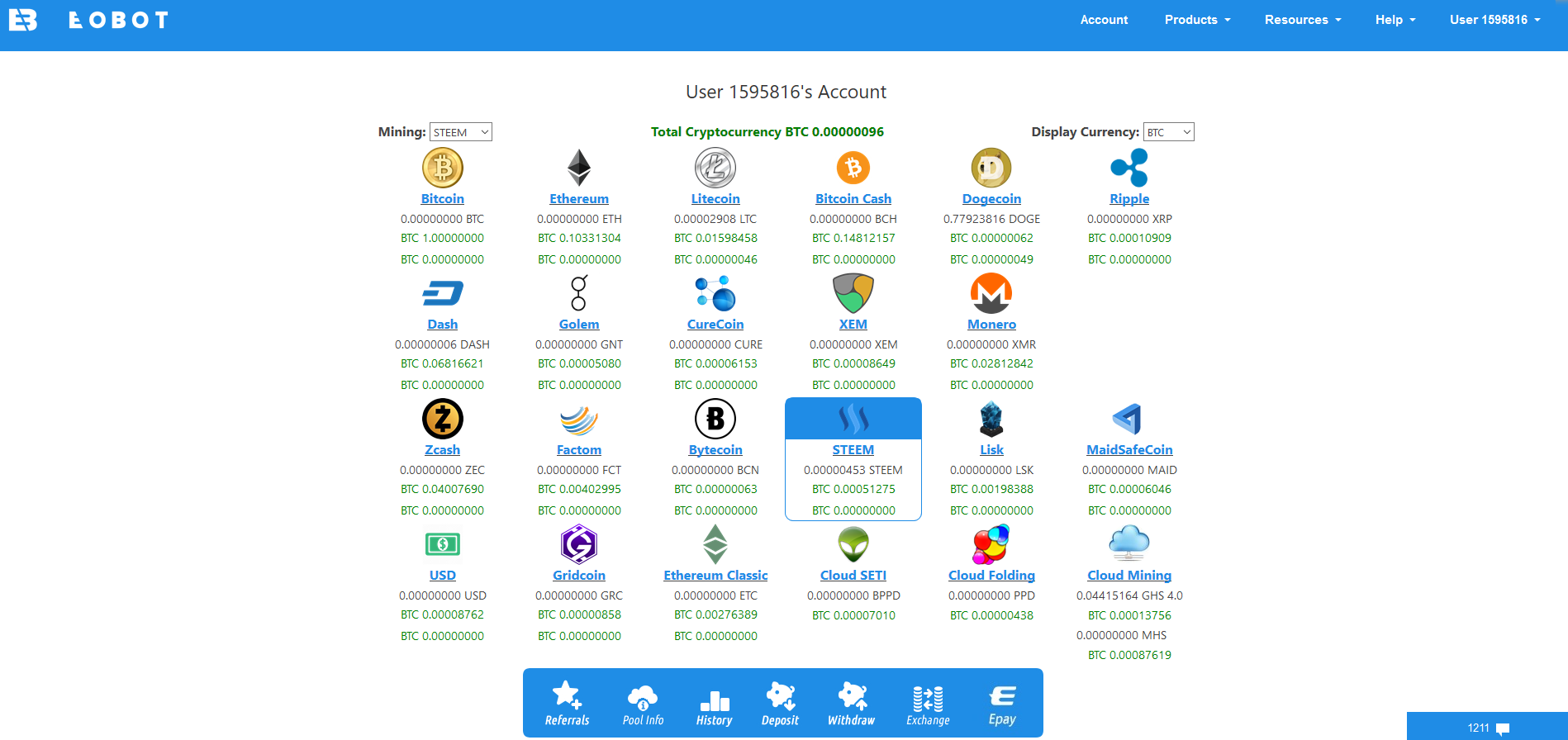 Para finalizar te vas a la pagina principal en “Account” allí vas a “Mining:” y eliges a “STEEM”