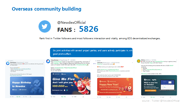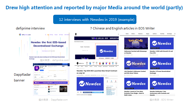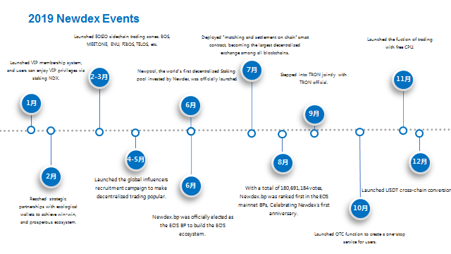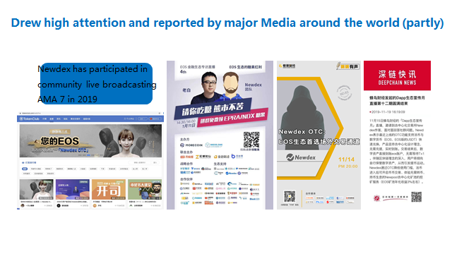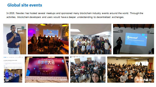 En 2019, Newdex ha organizado múltiples reuniones y patrocinado muchos eventos de la industria blockchain alrededor del mundo.