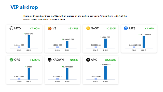 Hay 56 candy airdrops en 2019, con un promedio de un airdrop por semana.