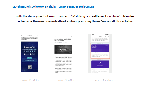 Con la implementación del contrato inteligente "Emparejamiento y liquidación en la cadena", Newdex se ha vuelto el exchange más descentralizado entre los Dex en todas las cadenas de bloques.