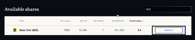 - Buscar la moneda en la que pensamos realizar el depósito, en este caso yo lo haré con "Beez Coin", pero los pasos son los mismos para todas las monedas. Damos click en "Invest" y obtendremos la wallet a la que debemos depositar, la copiamos o pulsamos en "Copy" y realizamos el depósito.