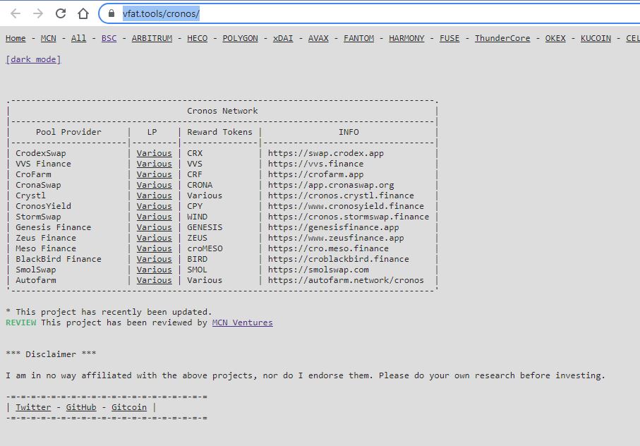 Cronos Defi 強猛生長,不到2星期就有7家DEX 在生態上了,比SmartBCH的速度還要快,就不知素質會不會參差不齊,rug pull 不知會否發生。
