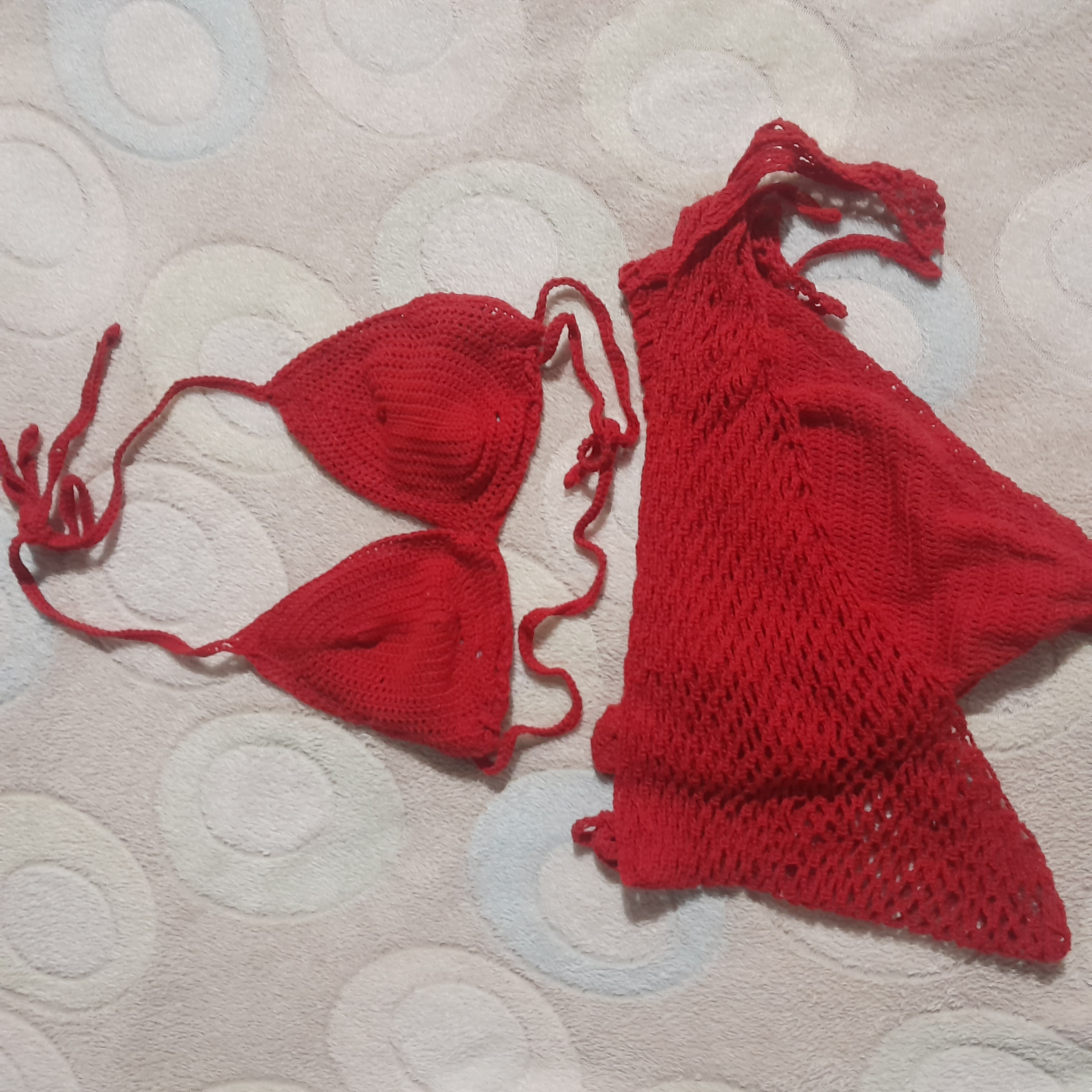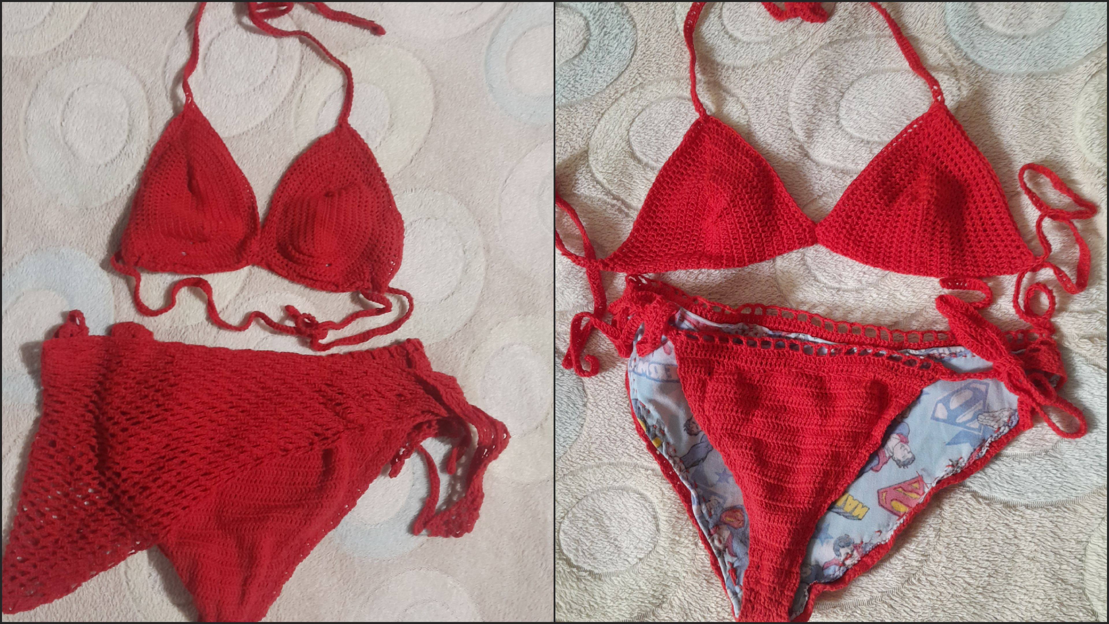 Como mencioné al inicio, me han entrado muchas ganas de tejer, pronto terminan las clases y me gustaría arreglar mis bikinis tejidos para las vacaciones, así que comencé por el peor de todos, la “fresa aplastada” como suelo decirle.