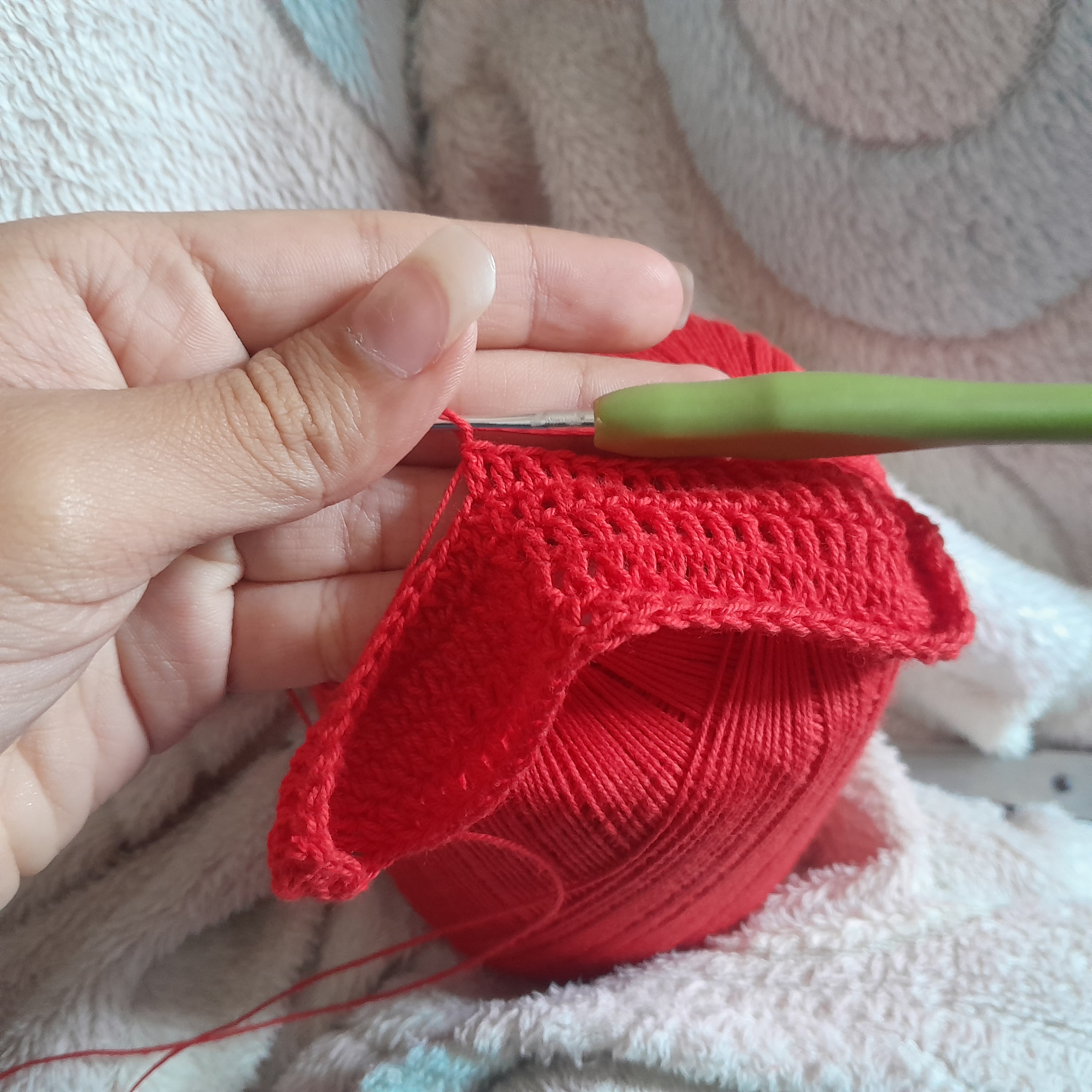 Esto porque, sí, quería que fuese de fresita pero ¡sorpresa! olvidé comprar hilo verde y de paso quedó horrible 😑
