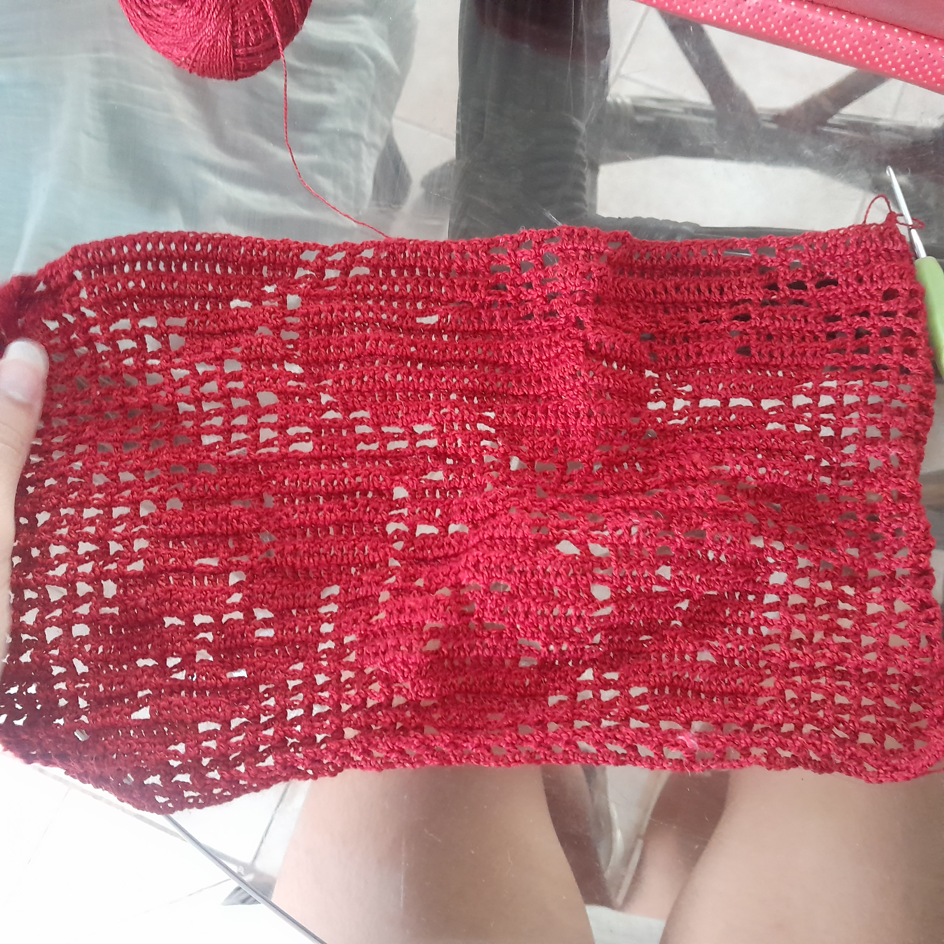 Desde el último mes y medio he estado concentrada en un tejido utilizando filet crochet, quería hacer un top pero tuve mucho tiempo sin tocarlo (lo cual lamento mucho) y cuando decidí retomarlo ya no entendía nada, así que opté por descartarlo, creo que será mejor retomarlo cuando inicien las vacaciones; me aseguraré de marcar mi último punto en la imagen de referencia para no tener que pasar por lo mismo.