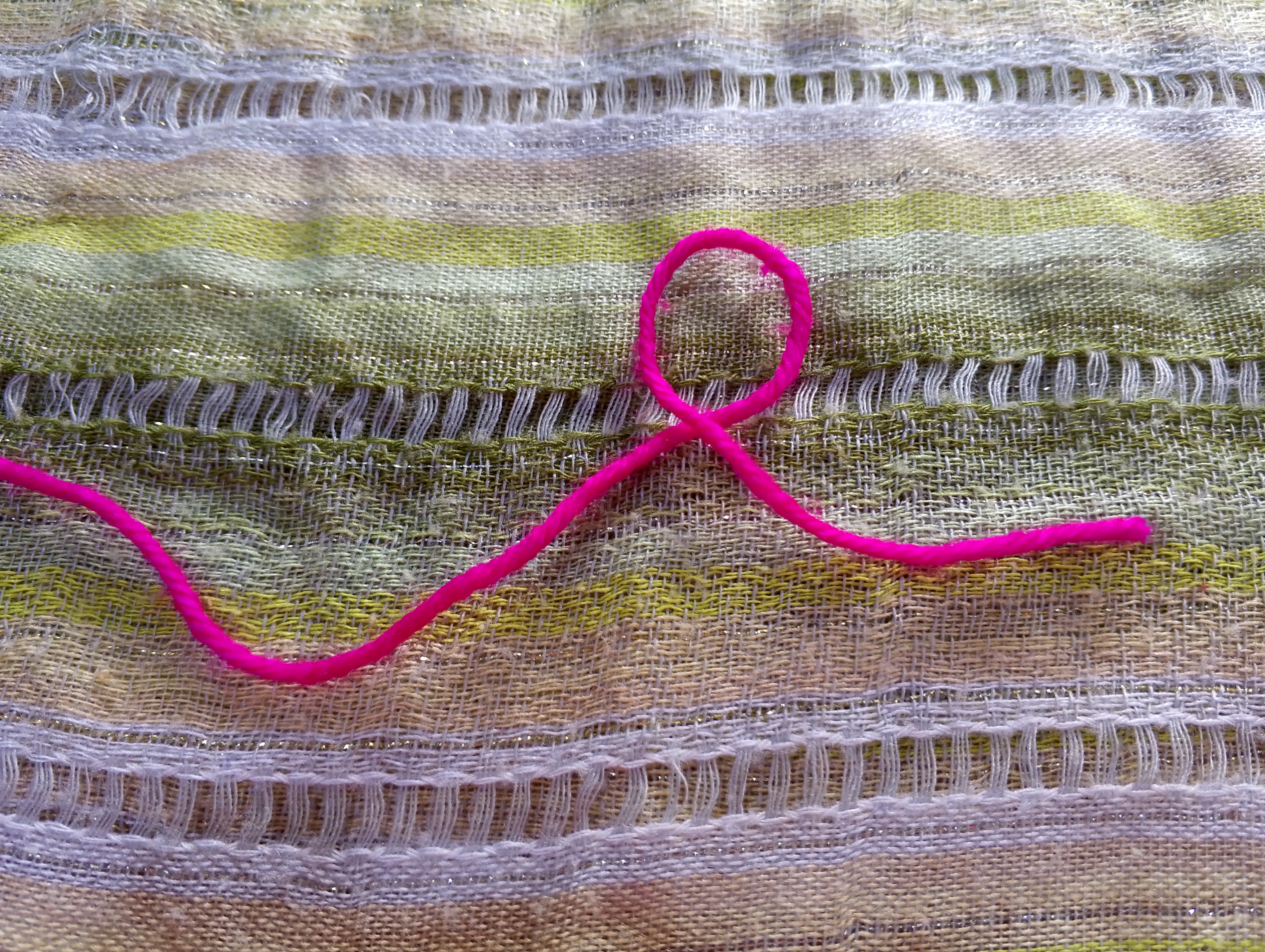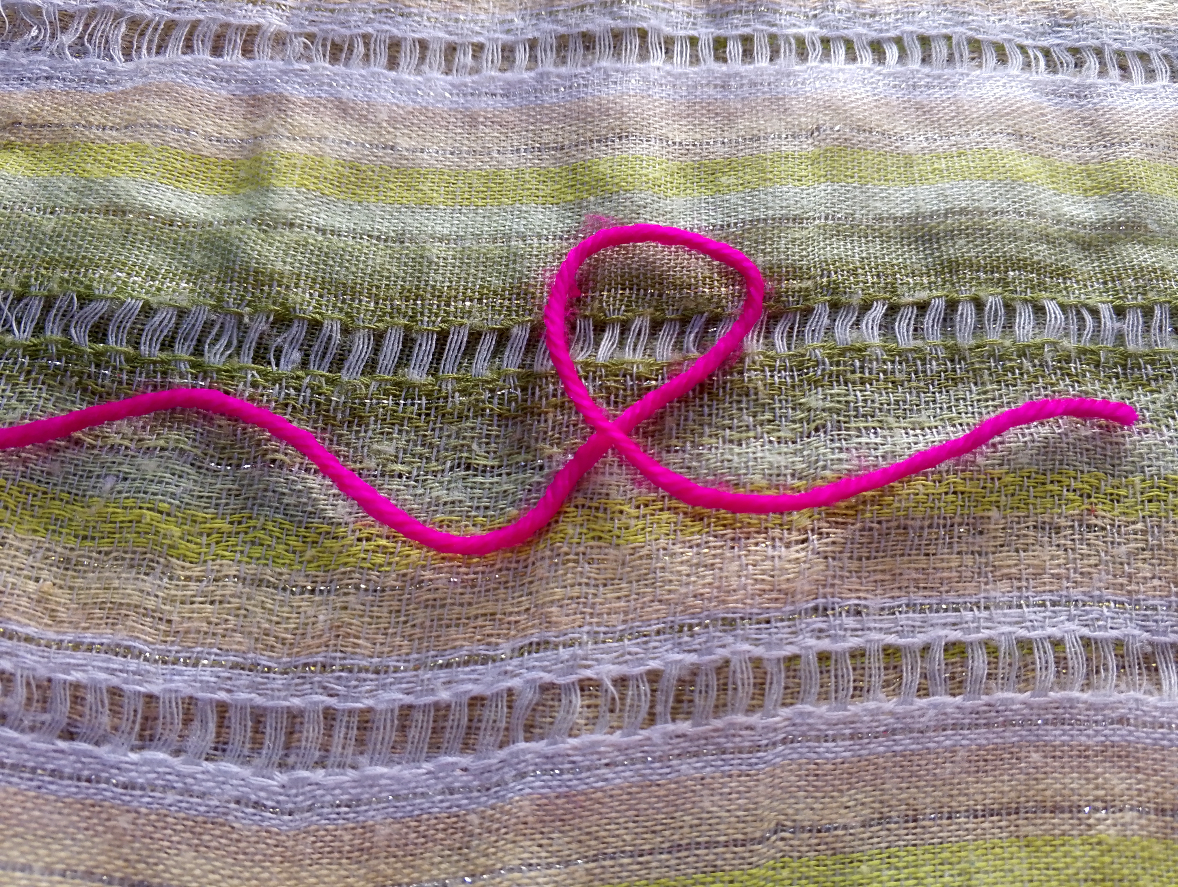 👉 Consideraciones: El inicio del hilo o la parte corta se situa en la parte derecha, la parte más larga del hilo siempre va del lado izquierdo.