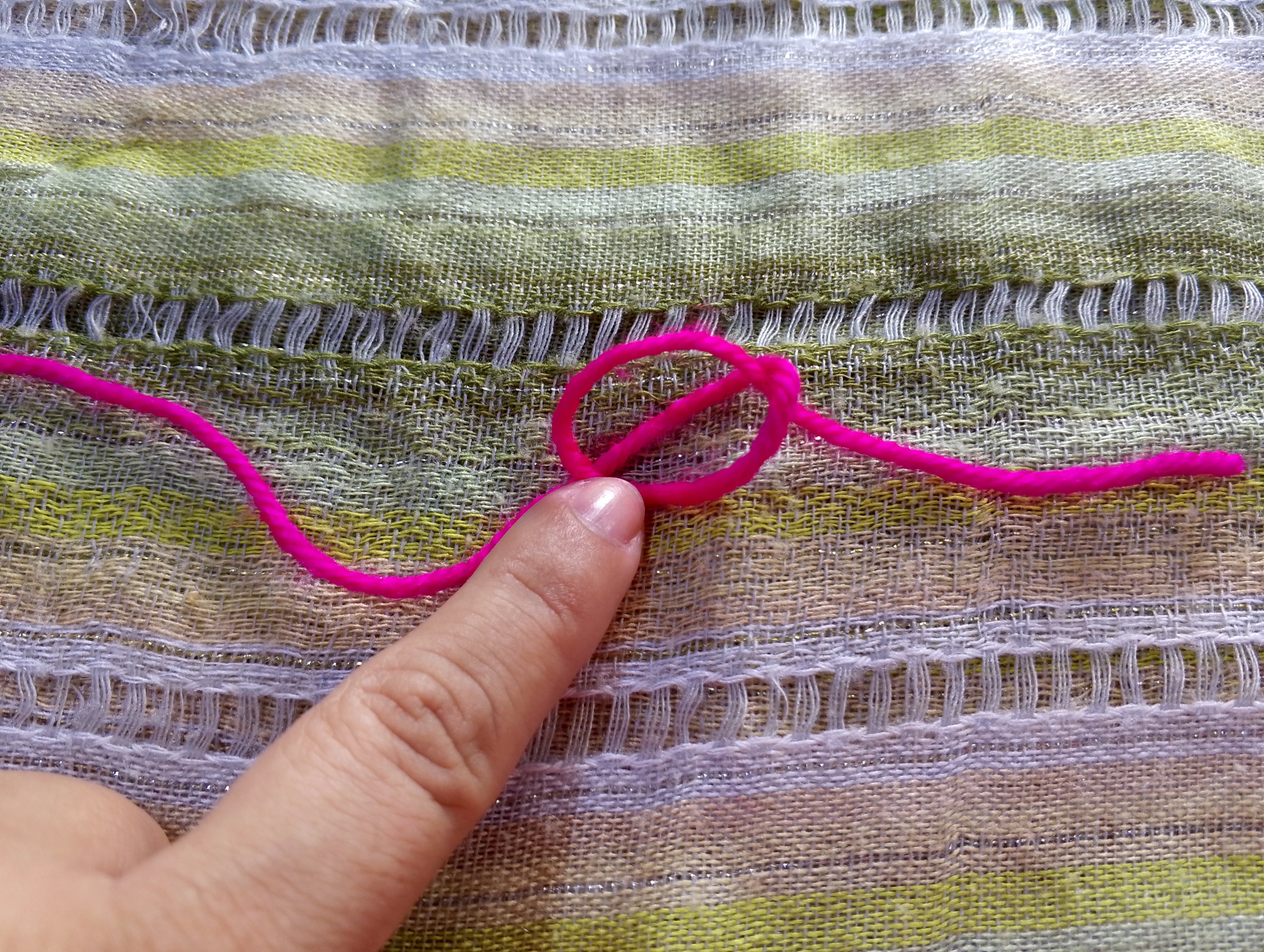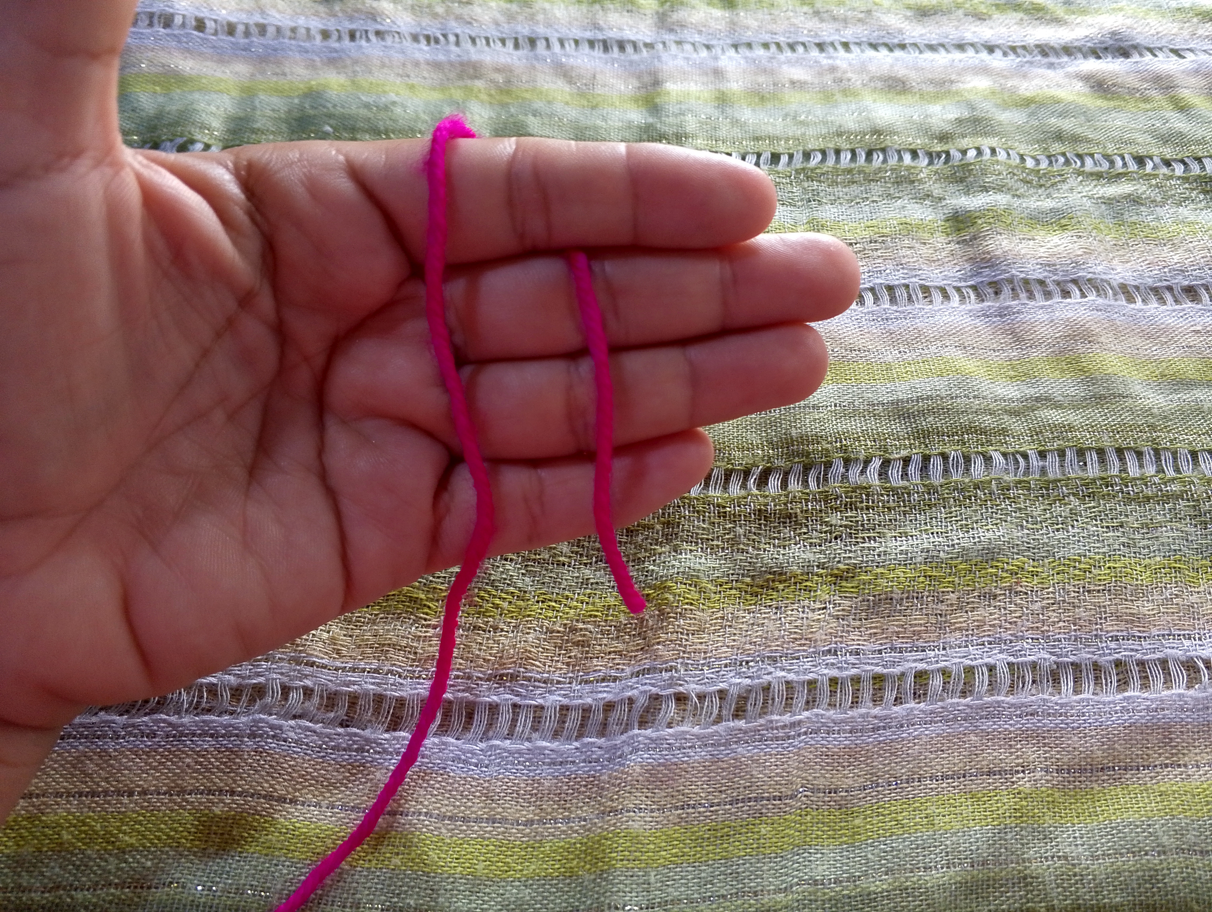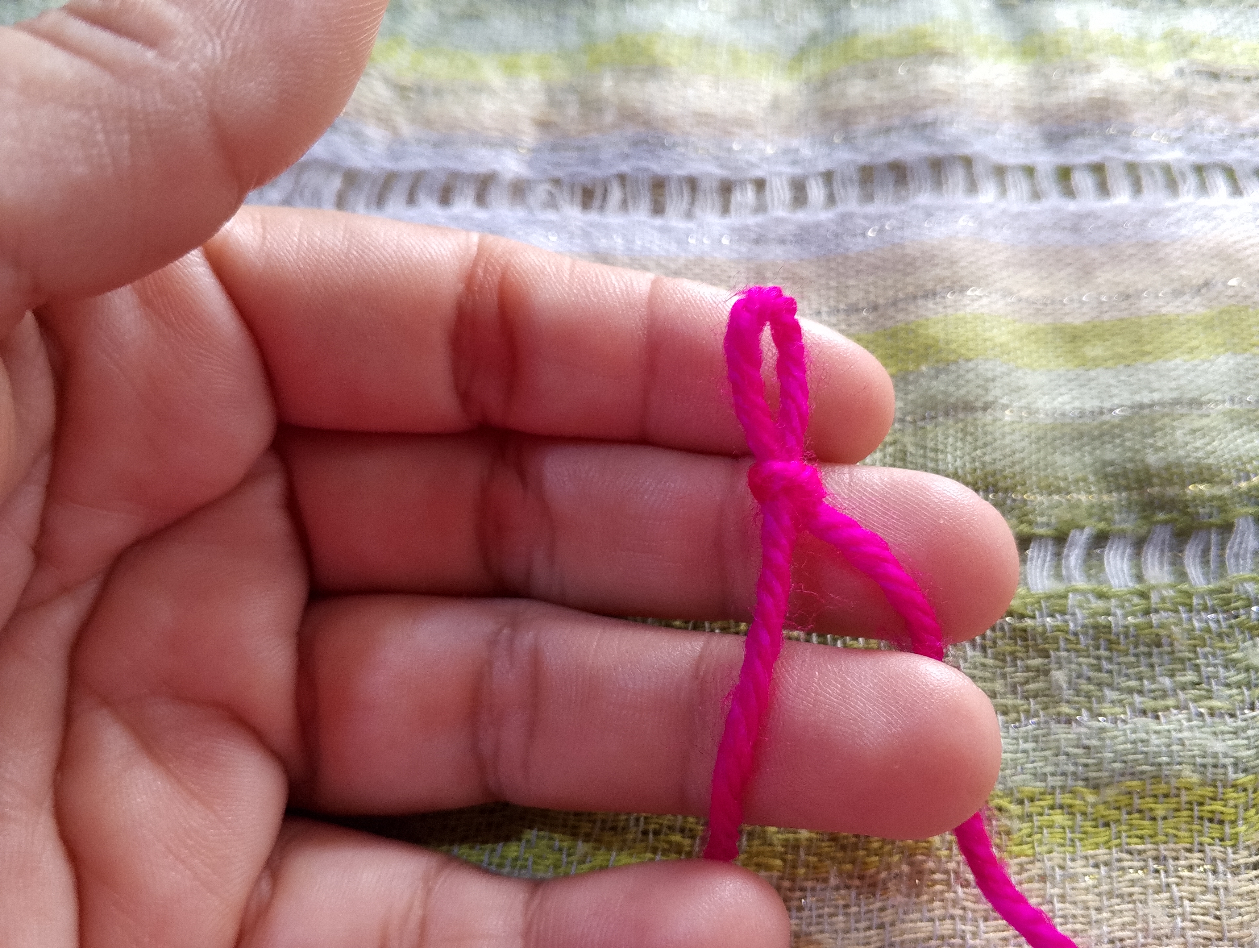 Hay personas que colocan el hilo en la parte media del dedo índice y dejan una distancia entre el los dedos que sujetan la labor.