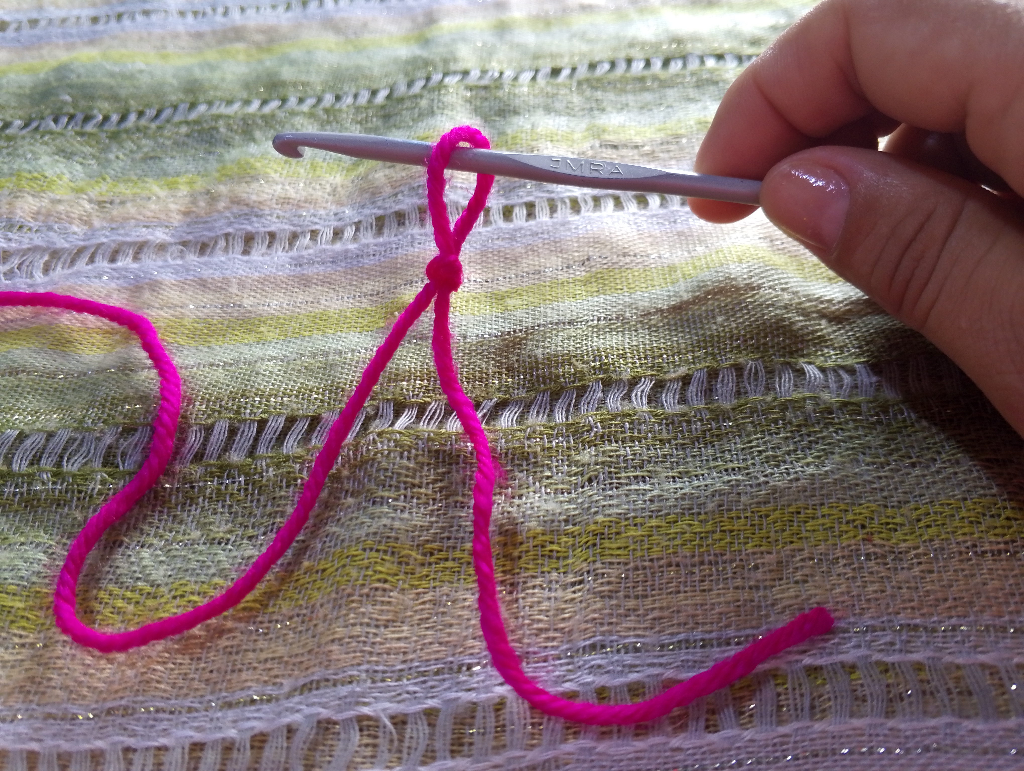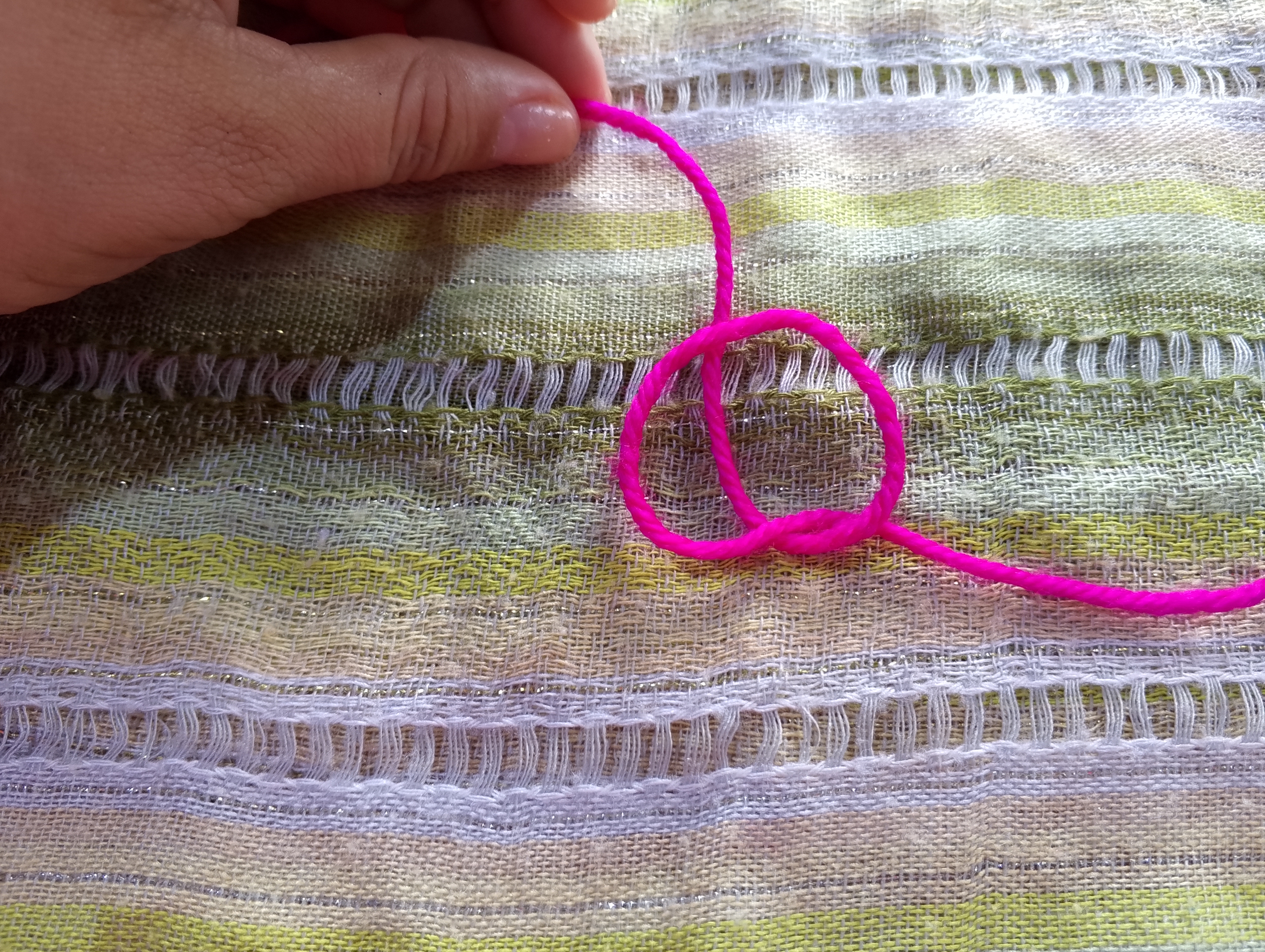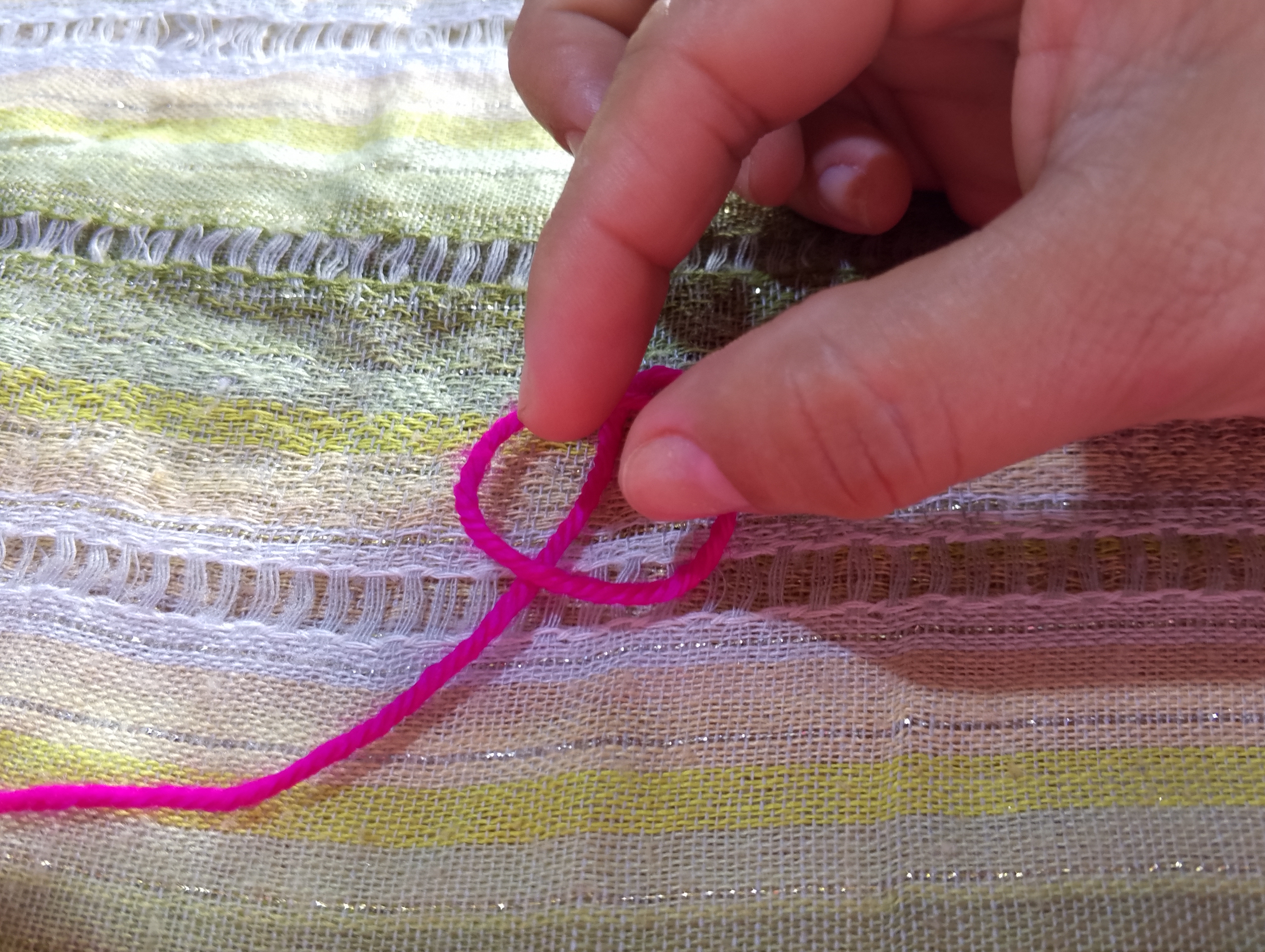 Hay personas que colocan el hilo en la parte media del dedo índice y dejan una distancia entre el los dedos que sujetan la labor.
