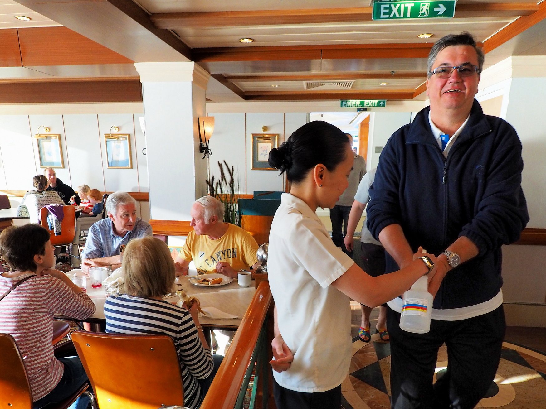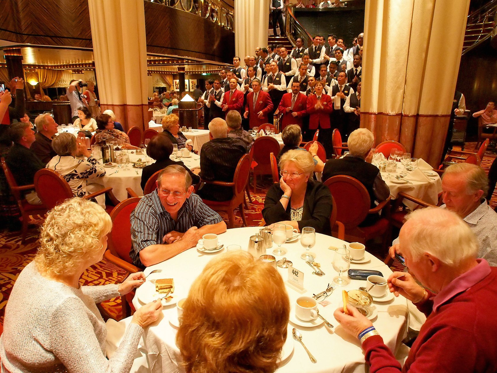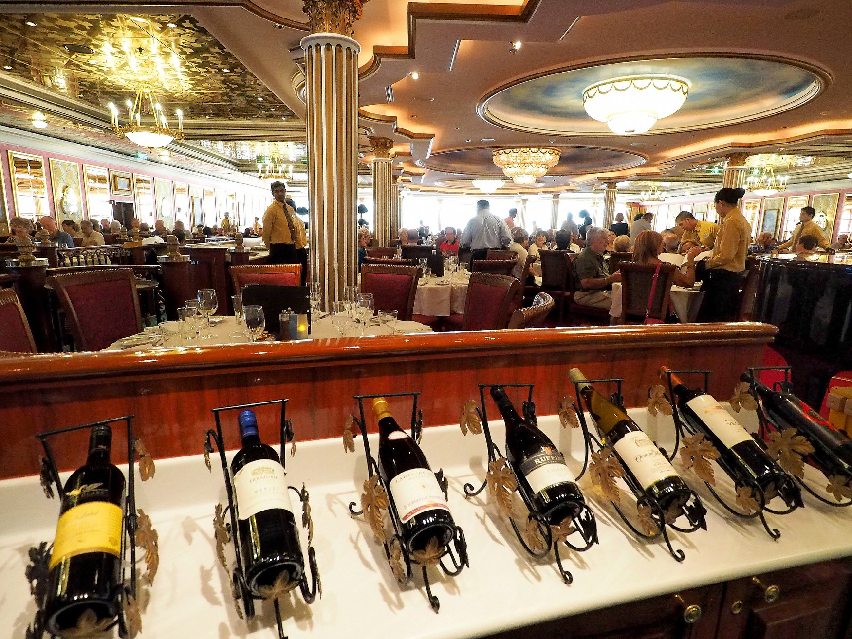 모든 크루즈에는 큰 부페 식당과 세가지 코스의 메인 레스토랑에서