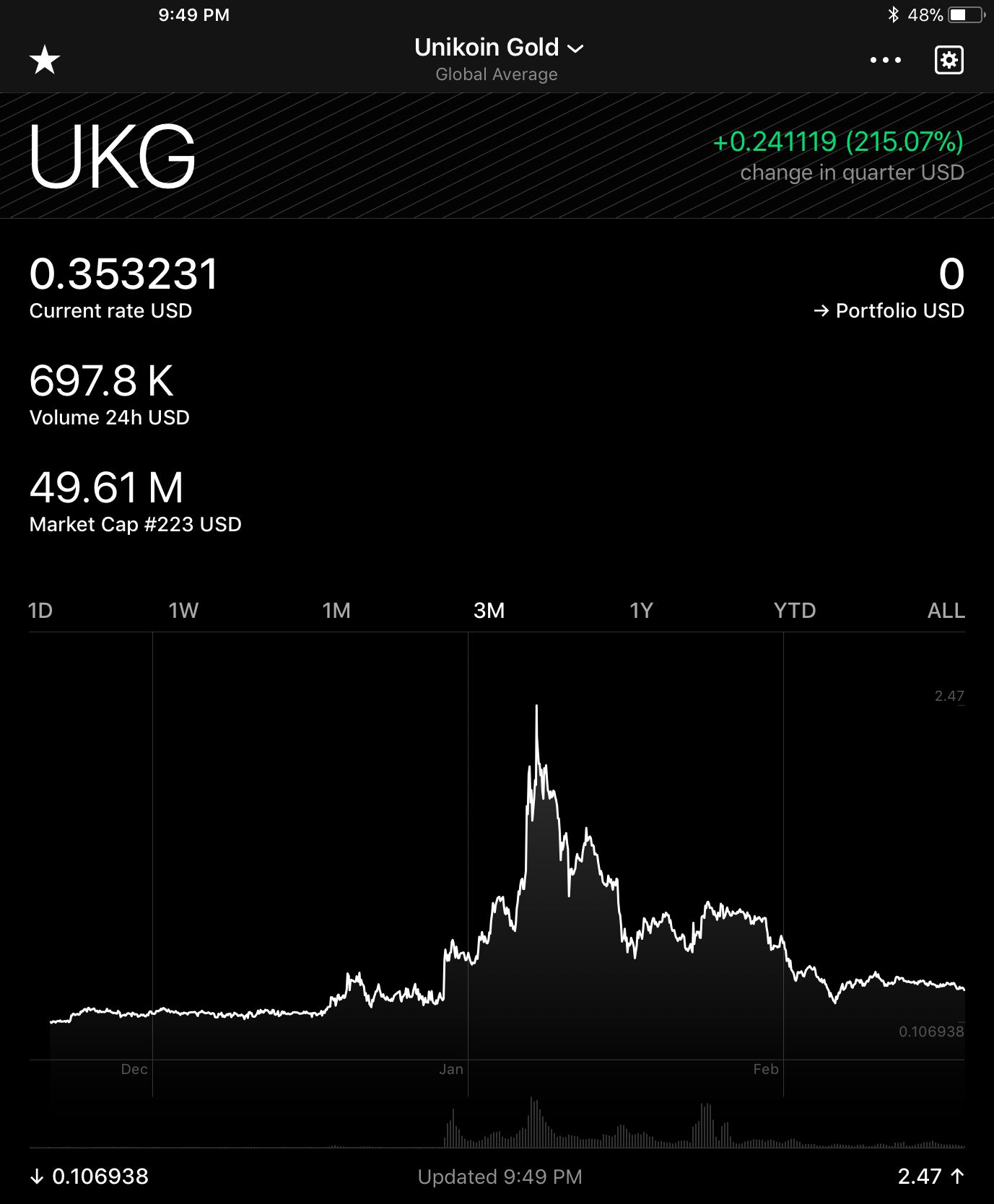 Here is a picture of UKG’s current price. It is irresistible to invest in this crypto due to is extremely low price and the fact that is been at a high of almost $3.
