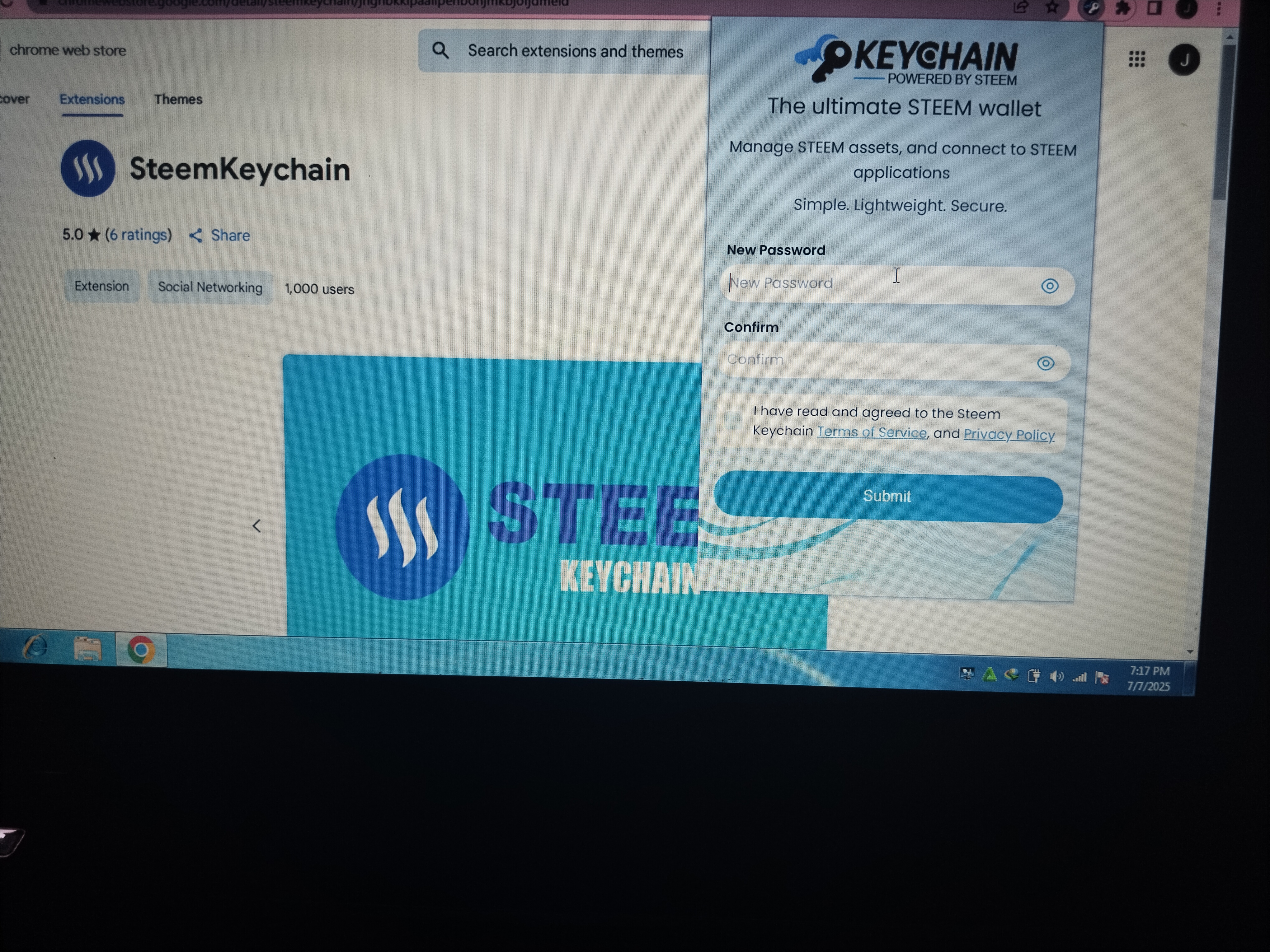 First I opened the link , I entered my username which is the Steemit username too. After that o clicked on the steem keychain downloading. After that there was the requirements of entering new password and then the confirmation of the password. After putting the required information I clicked on the submit button.