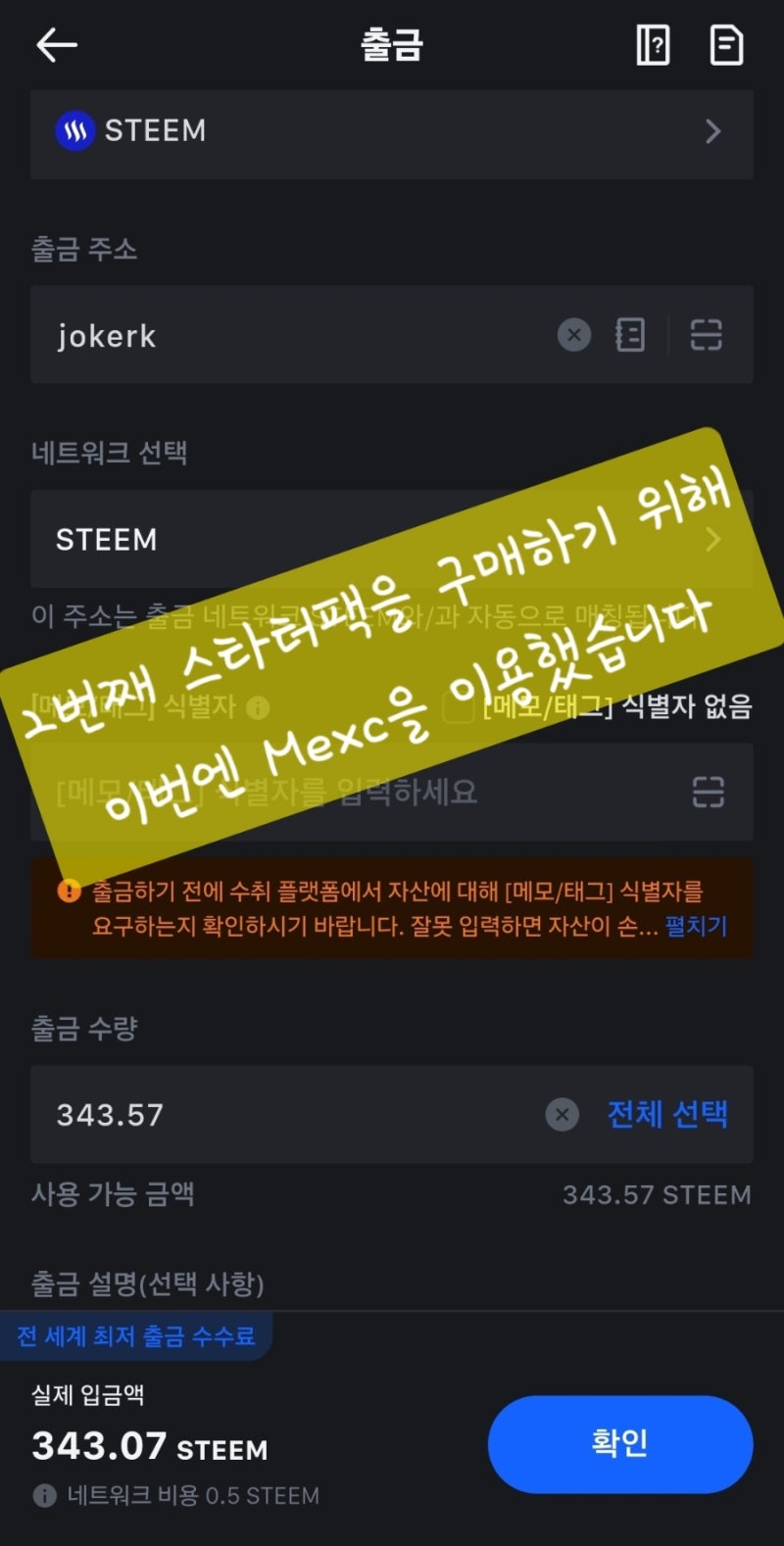 스타터팩을 사기 위해서 이번엔 mexc거래소를